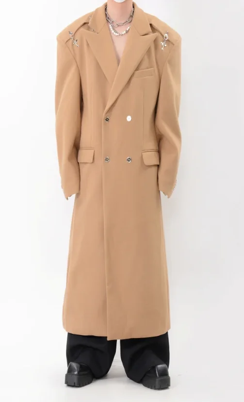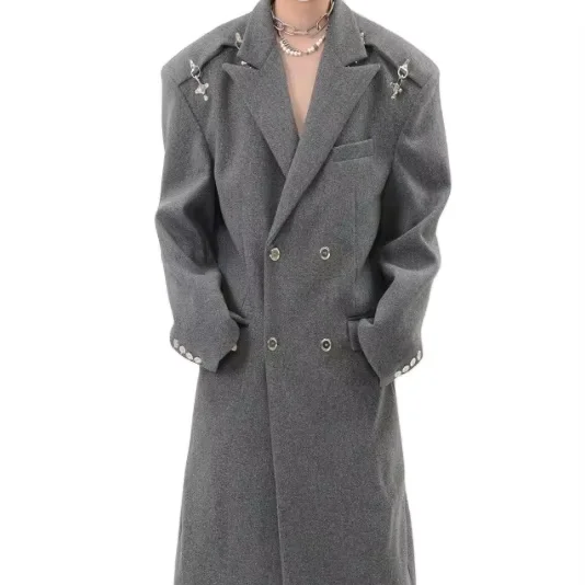 Wholesale Custom Men's Long Genuine Cashmere Wool Coat Single Sided Genuine Wool on One Side Clothing Overcoat Double Breasted