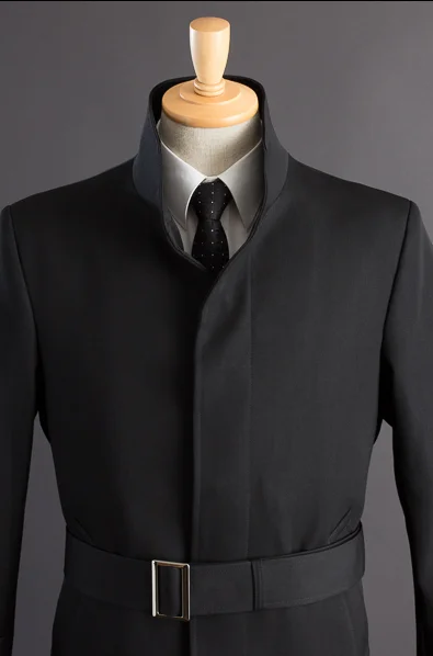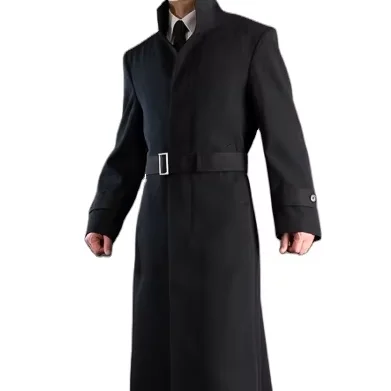 Men's Lapel Coat Casual Suit Polyester Outdoor with Lining Long Coats Windproof Single Breasted Waistband Men Clothing Overcoat