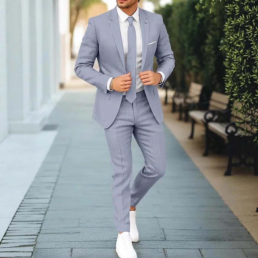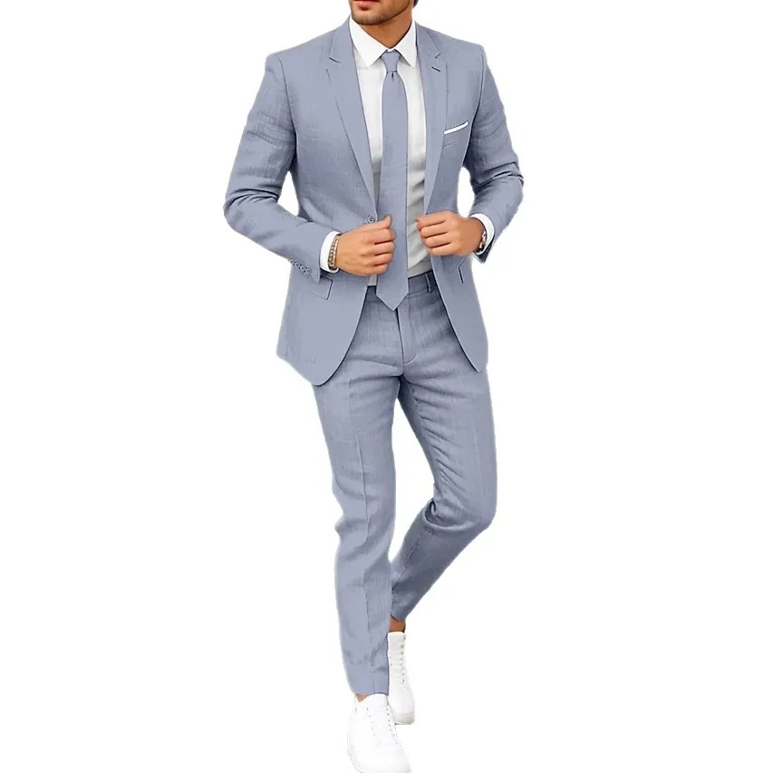 Men's Plus Size Business Suit Single Breasted Two-Piece Set Notched Lapel One Button Cross-Border Style Worn Worsted Anti-Shrink