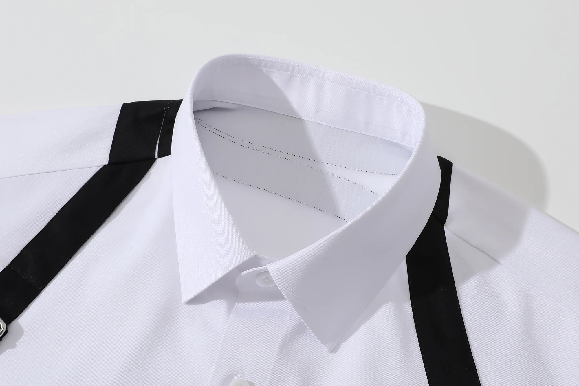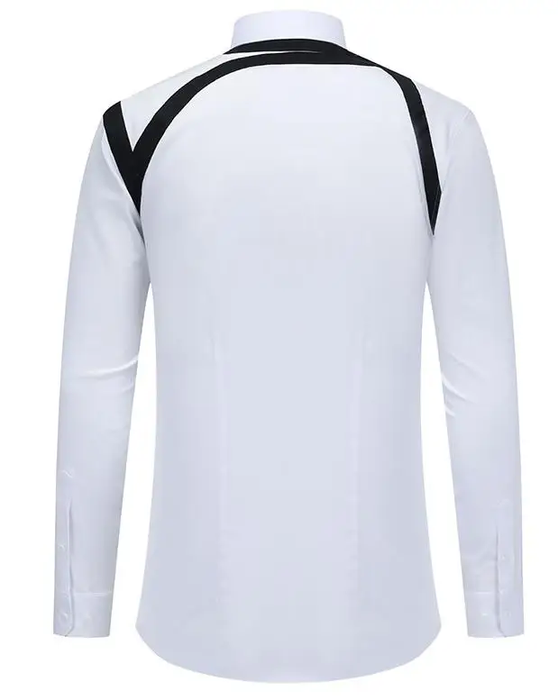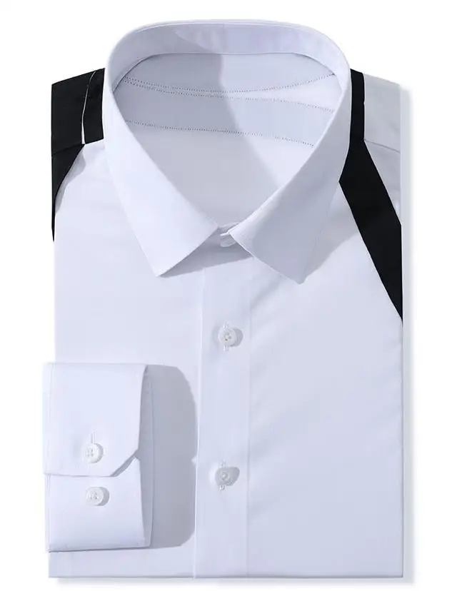 MTM Men's Dress Shirt White Summer Slim Fit with Black Contrast Stripes Long Sleeve Spread Collar Embroidery Custom Office Wear