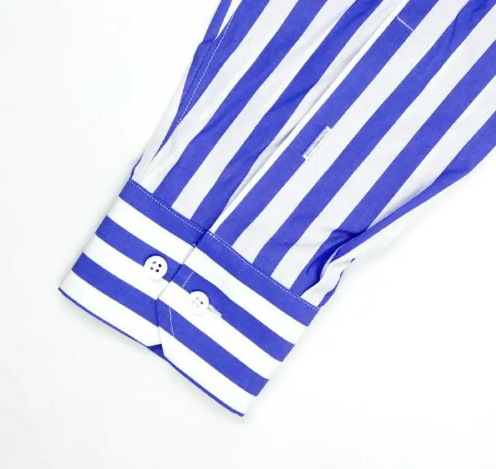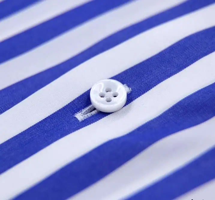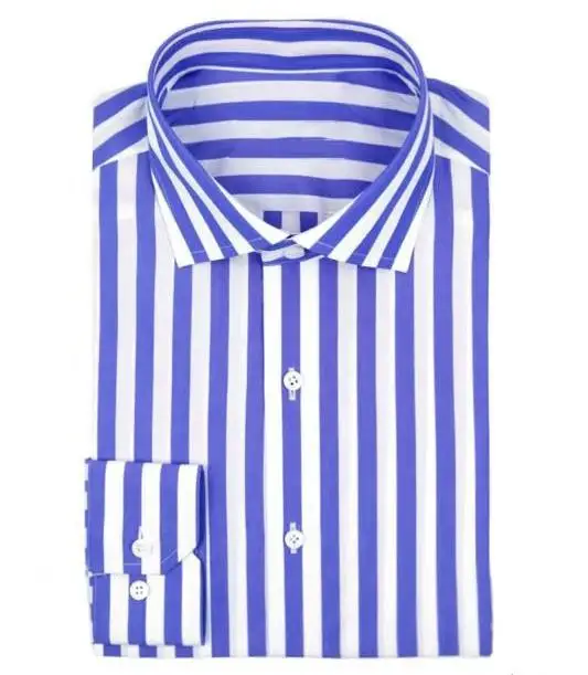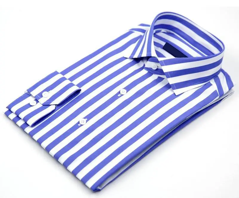 Classic 100% Cotton Men's Business Formal Suit Shirt Blue White Stripe with Turn Down Collar & Anti-Wrinkle Feature Casual Style