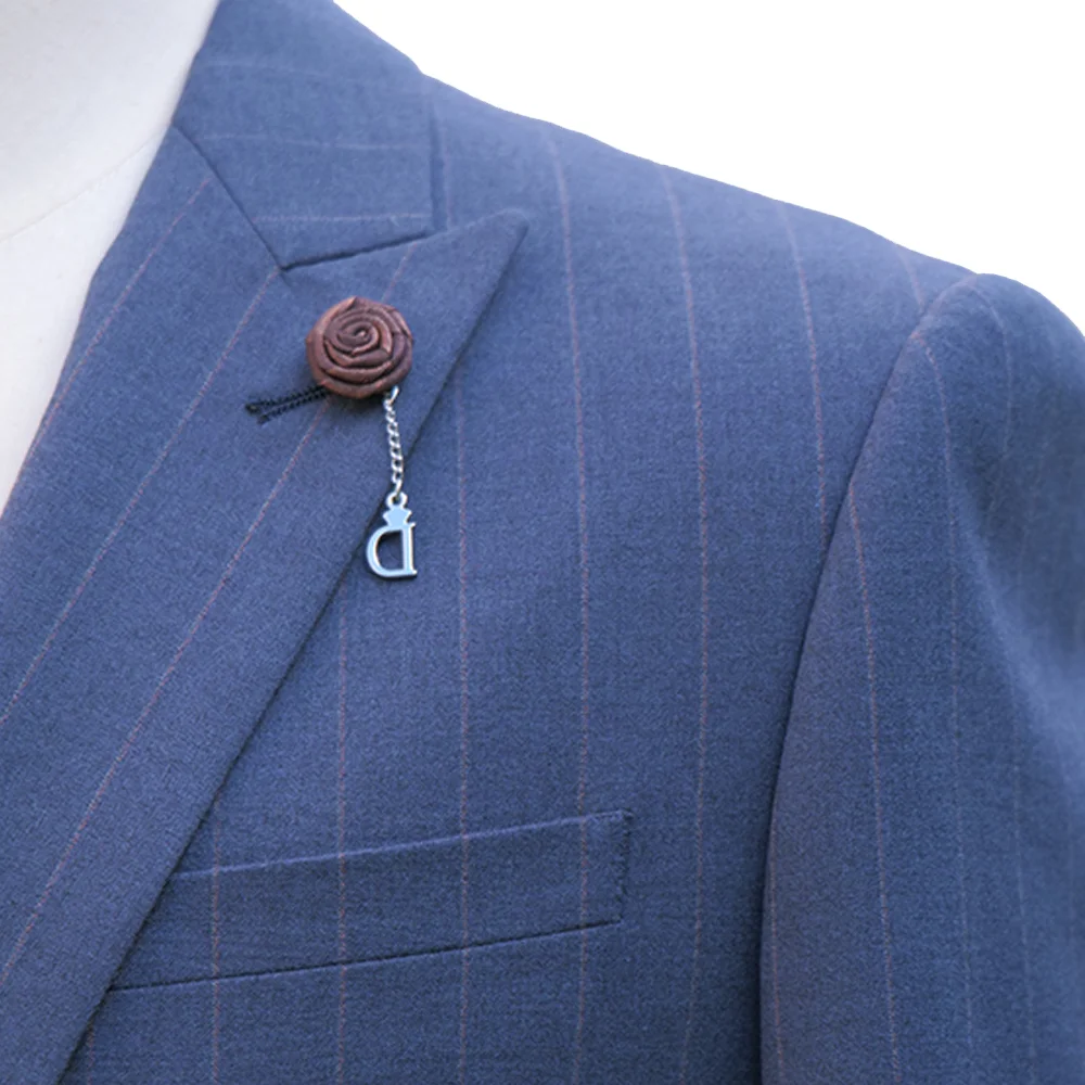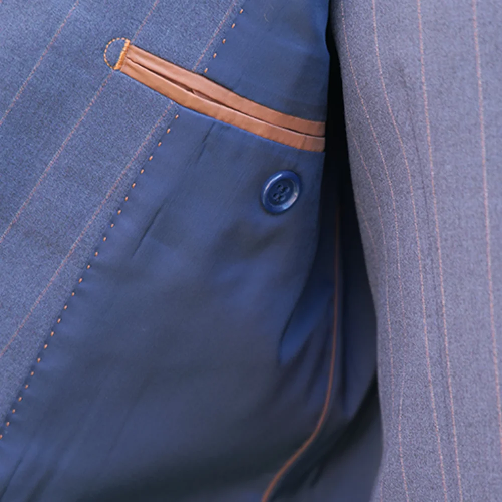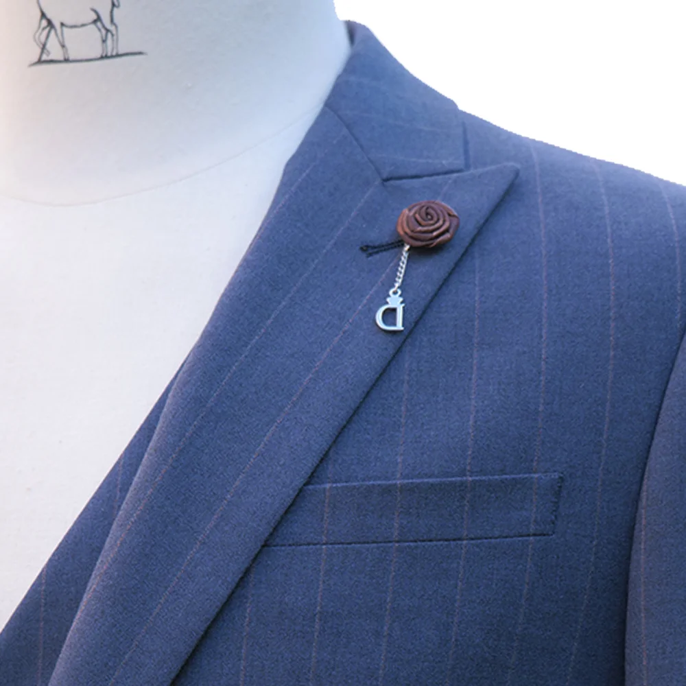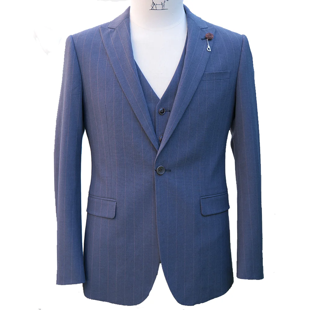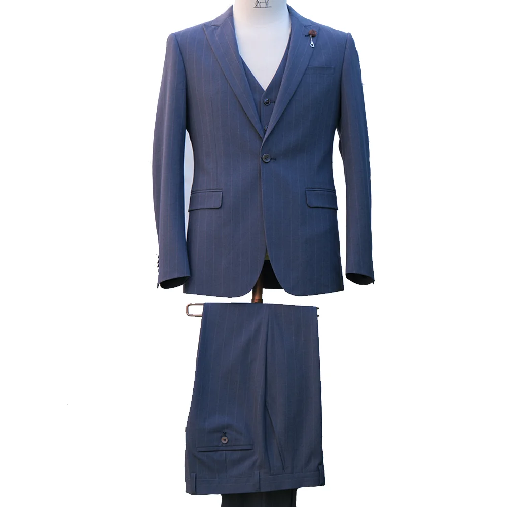 Men's 3-Piece Business Suit Latest Design with Navy Strips Fabric Fast Delivery Regular Fit Coat Pant & Vest Plus Size Available
