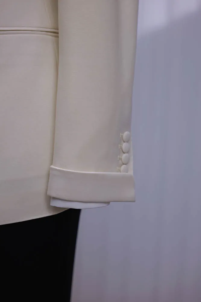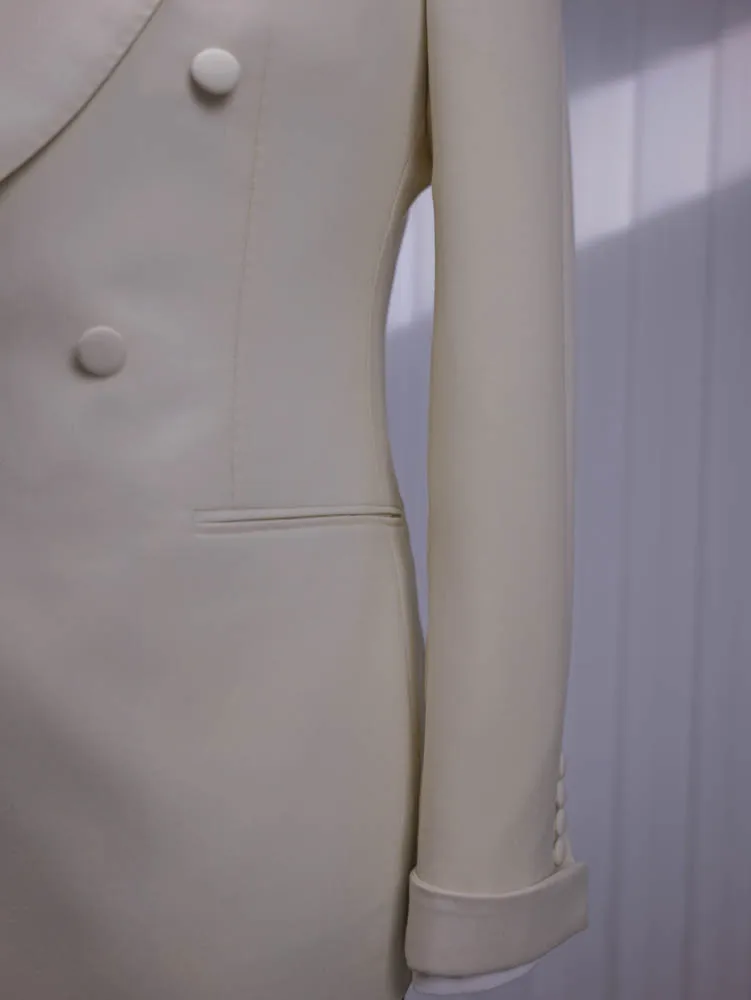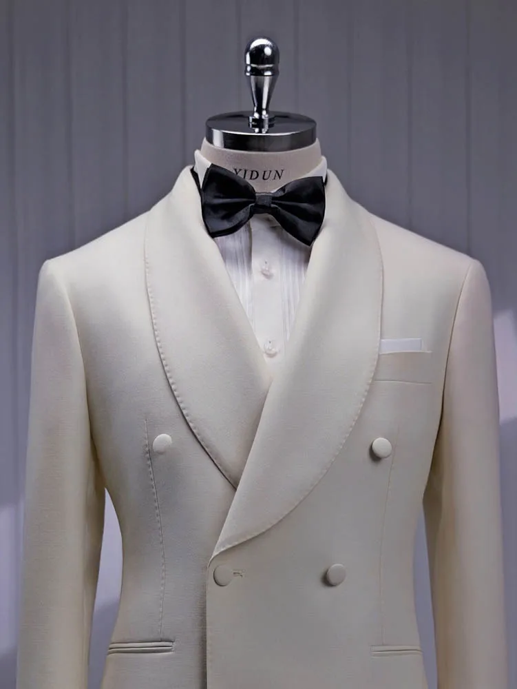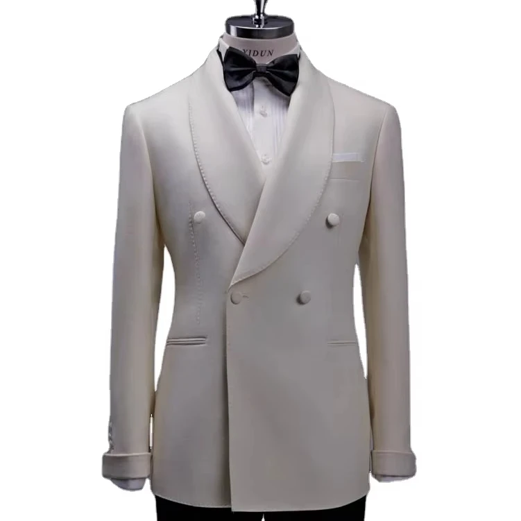 MTM Customizable White Woolen Fabric Double-Breasted Tuxedo Suit Blazer Shawl Lapel Plus Size Breathable Made-to-Measure for Men