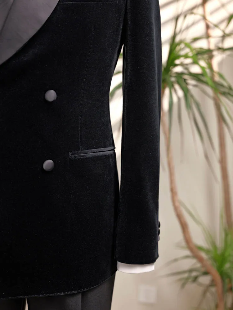 Men's Fashionable Unique Style Custom Velvet Blazer Jacket Suit Tuxedo Plus Size Breathable with Zipper Fly Pant Closure