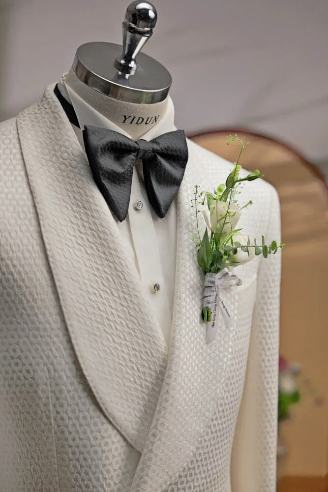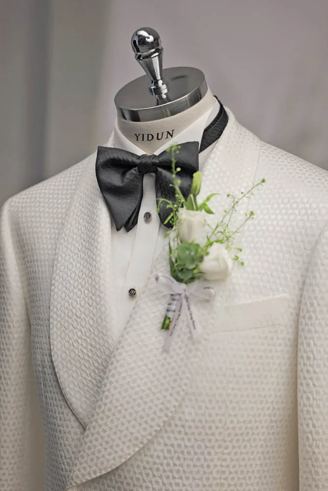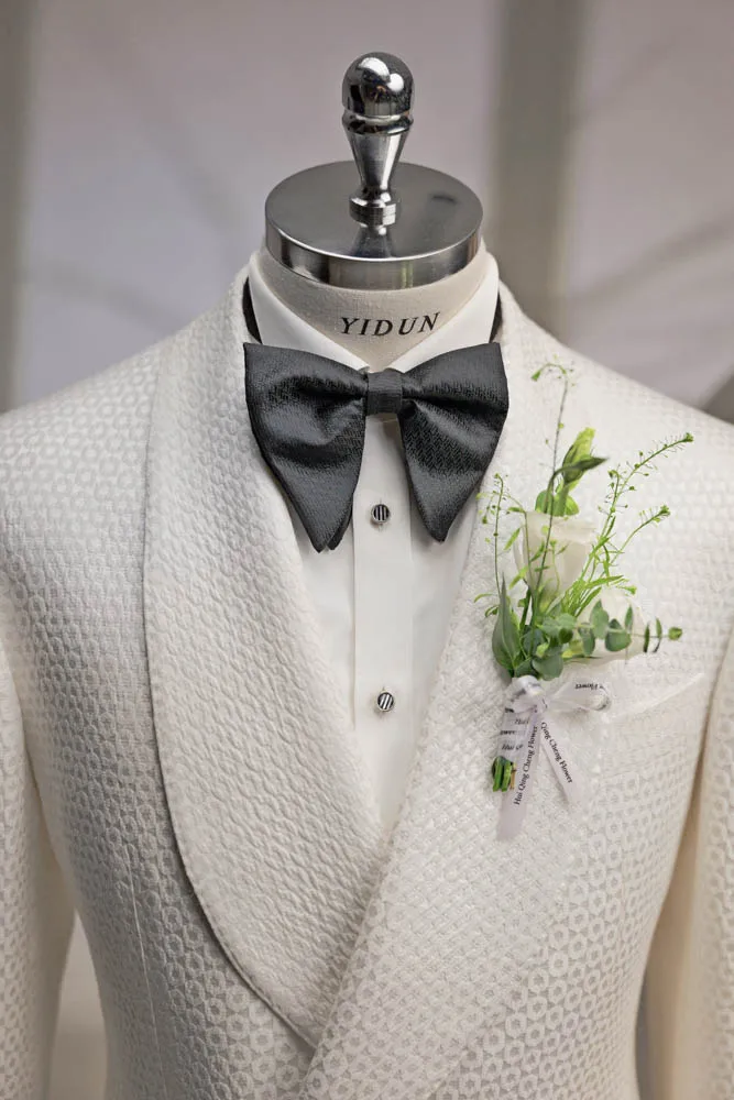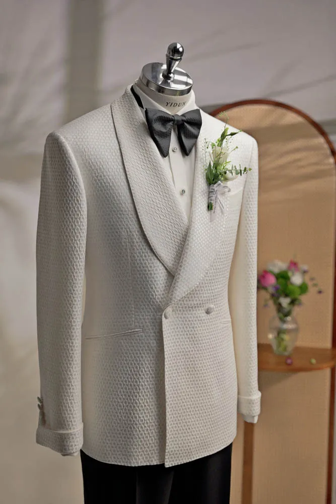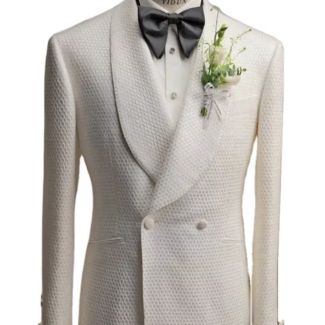 Men's Custom White Tuxedo High Quality Slim Fit Double Breasted Jacquard Fabric Wedding Suit Plus Size Woolen Big Breathable