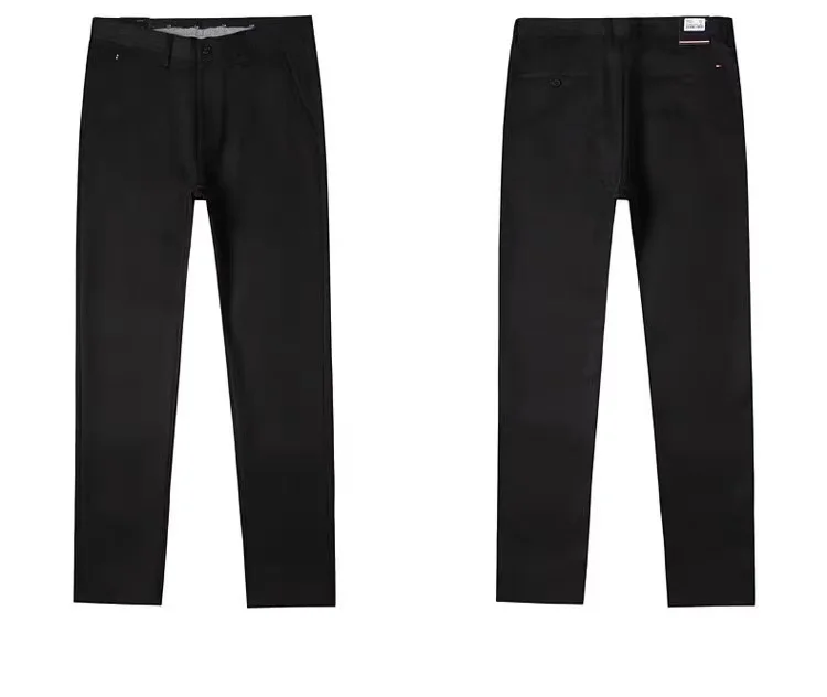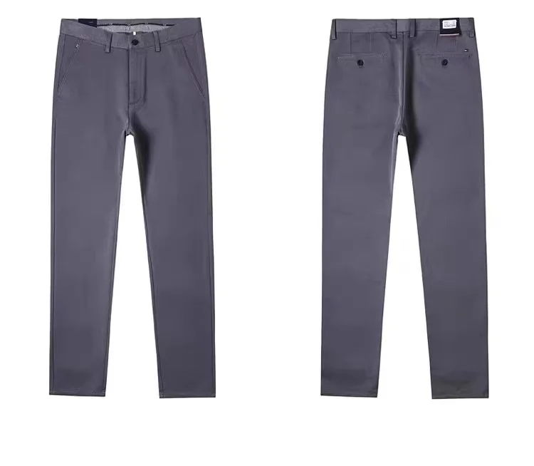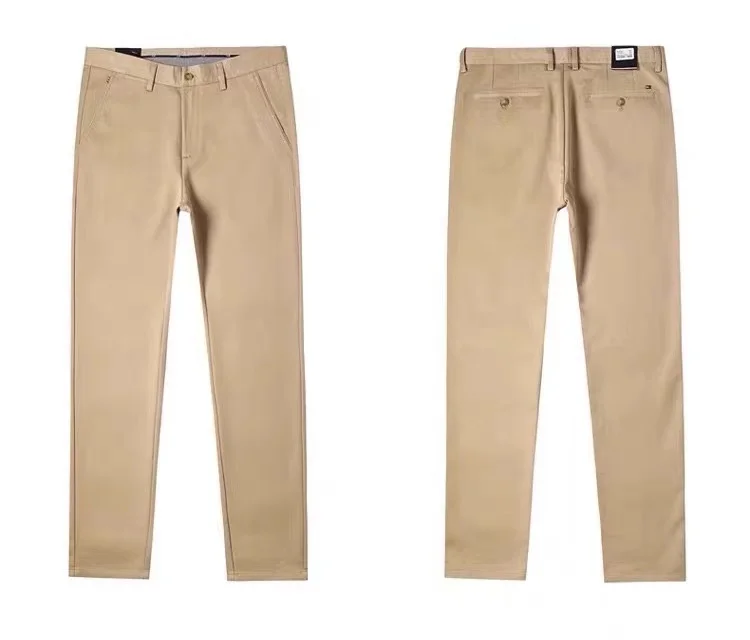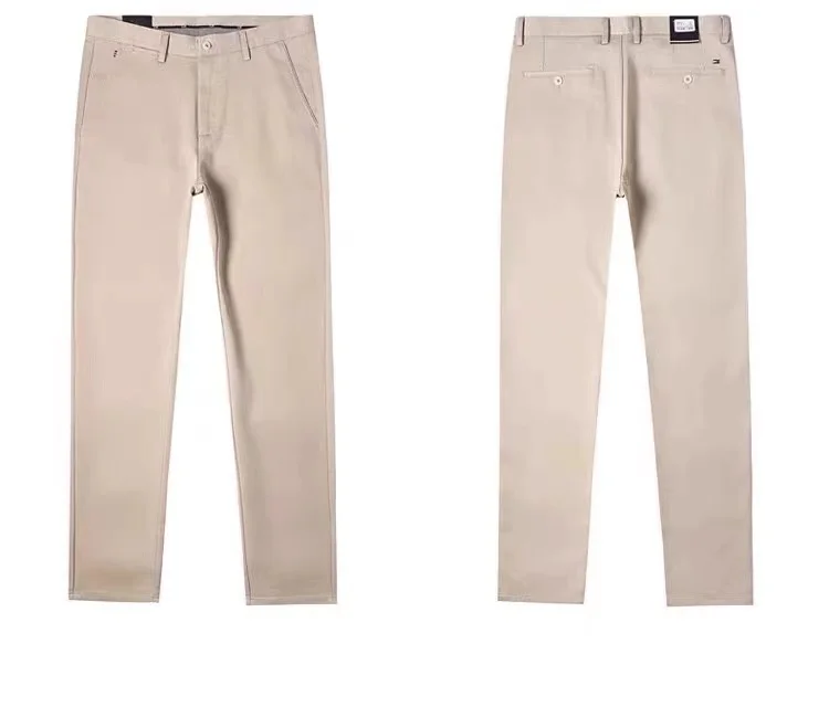 OEM Men's Casual Chino Pants Mid Waist Leisure Style Straight Pattern Washed Canvas Trousers Flat Front Garment Finished Cotton