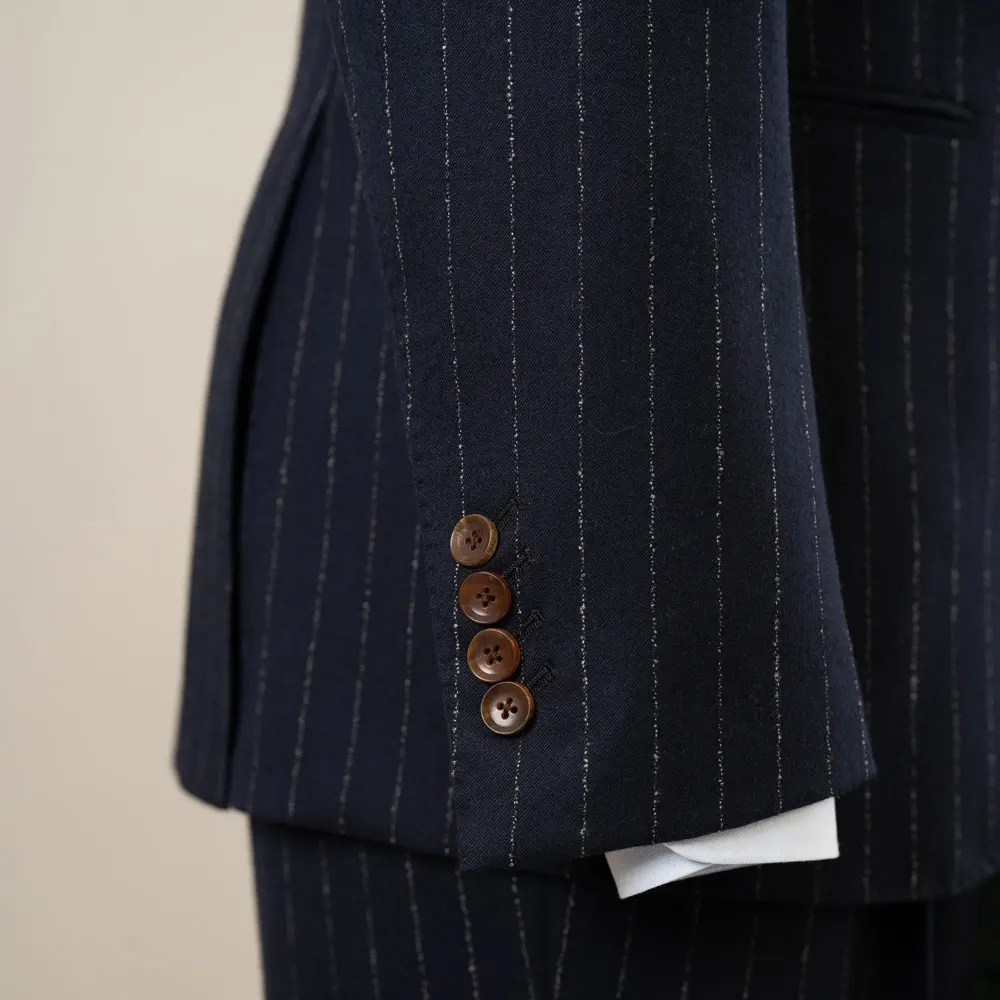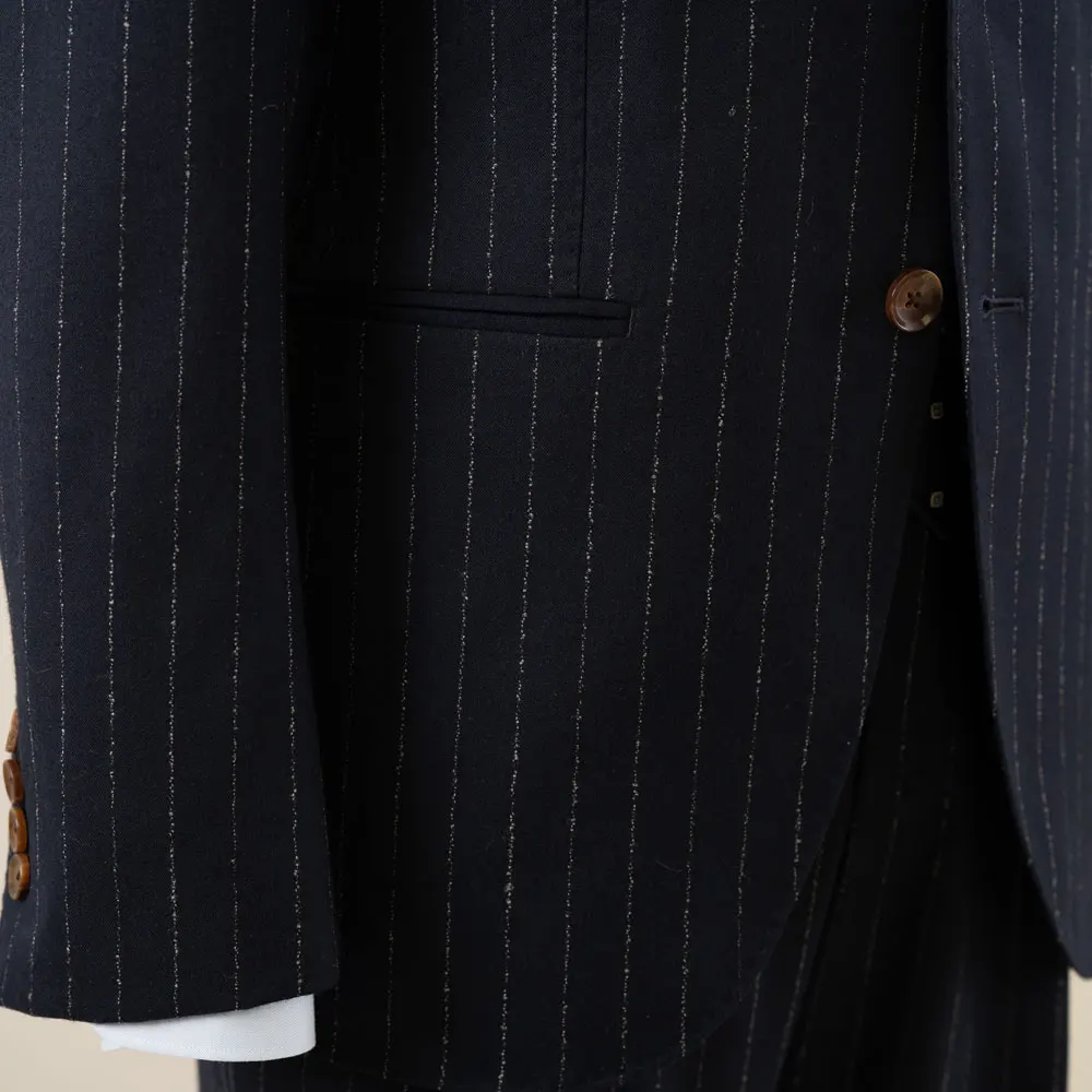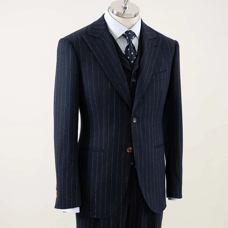 New Fashion Men's Business Suits 100% Wool Navy Striped Slim Fit Plus Size Breathable 2 Pieces Official Style