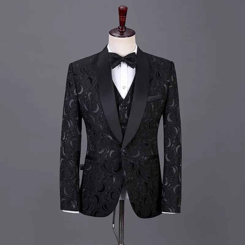 Drop Shipping MOQ Custom Handsome High Quality Men Suits 3 Pieces Slim Fit Grooms Men Wedding Suit Jackets