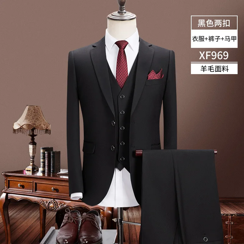 New Design Mens Business Suits 3 Pieces Blazer Vest Pants Set Men's Groom Wear Wedding Suit for Men
