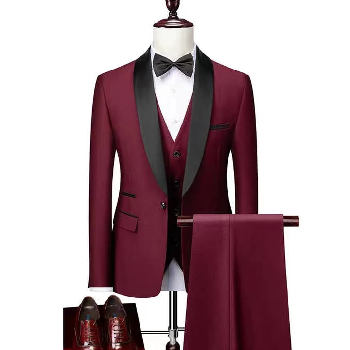 MF9832 OEM Men Business Casual Wedding Party Three Pieces Trousers Waistcoat Set Male Coat Pants Vest Fashion Slim Fit Suits