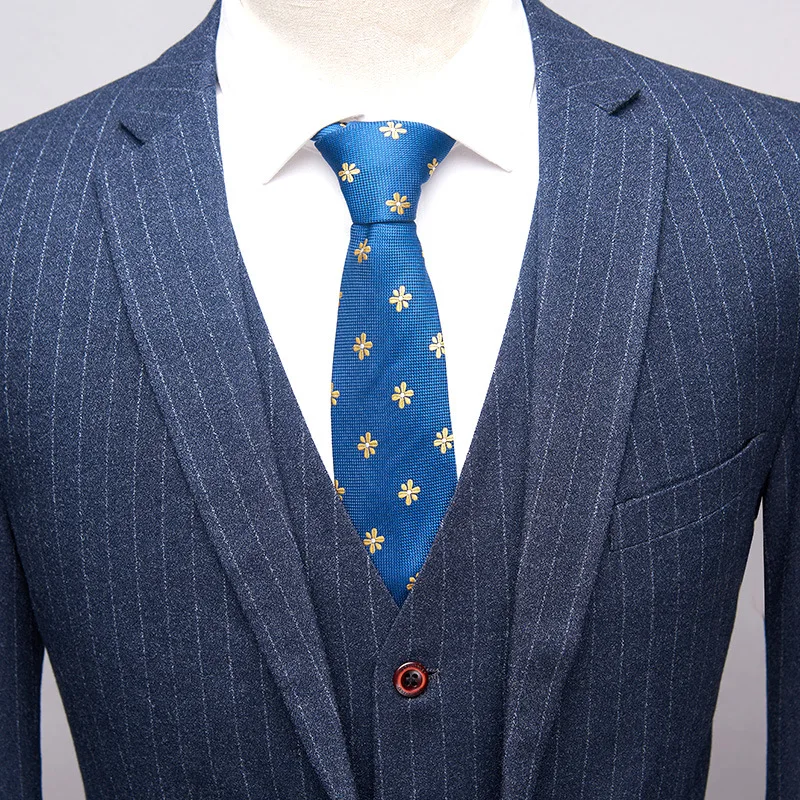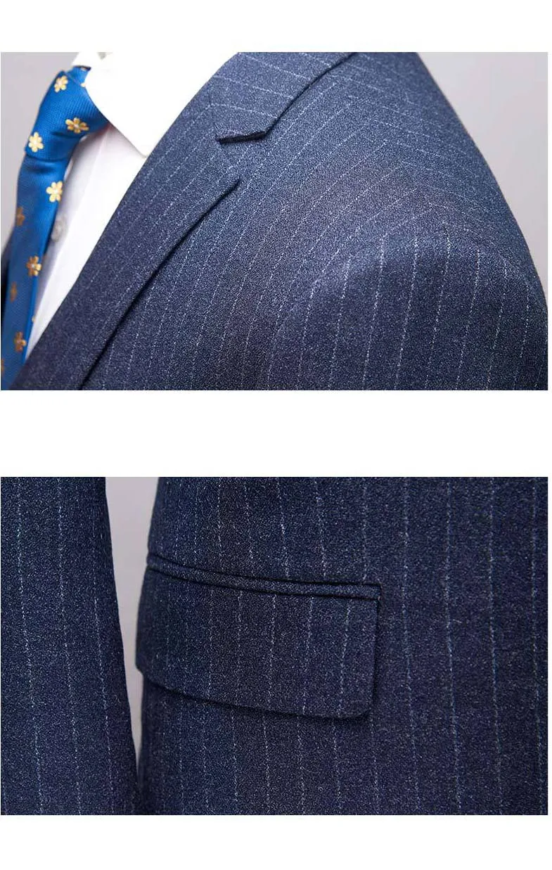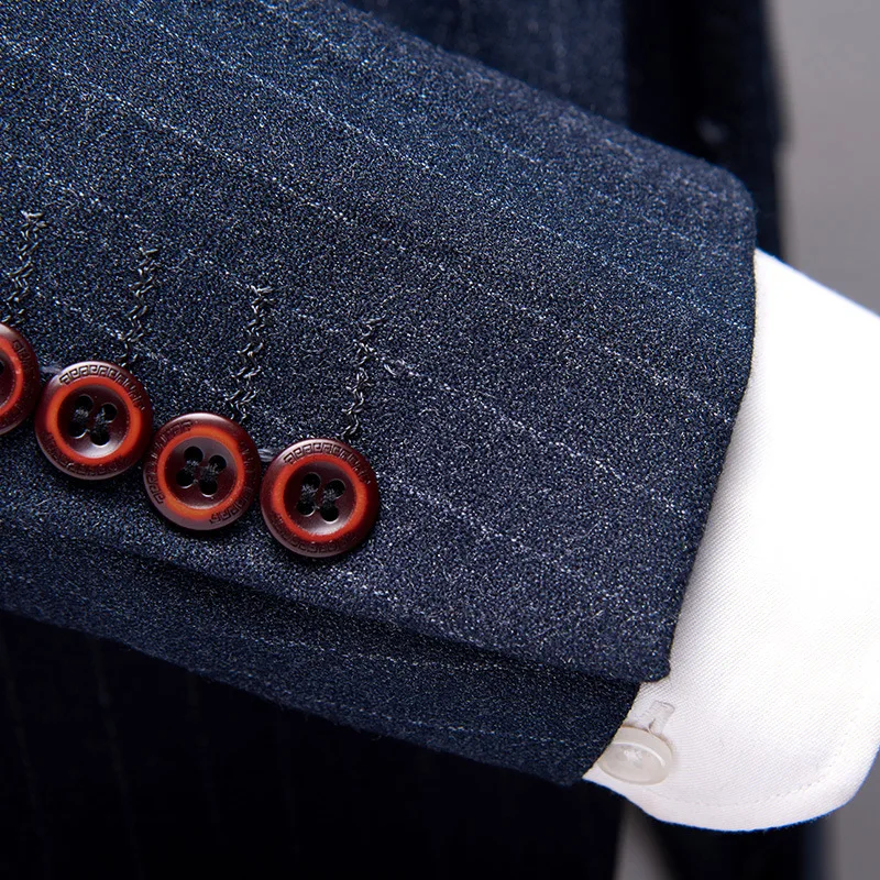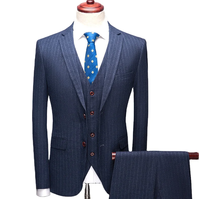 OEM Formal High Quality Suit 3 Pieces Wedding Wool Striped Men Suits Italian Slim Fit Business Men'S Suits