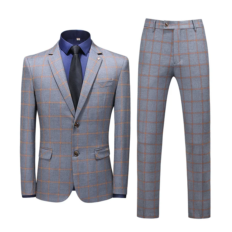 OEM Men's Plaid Casual Blazer Business Suits Slim Fit Three Piece Suit Set for Men