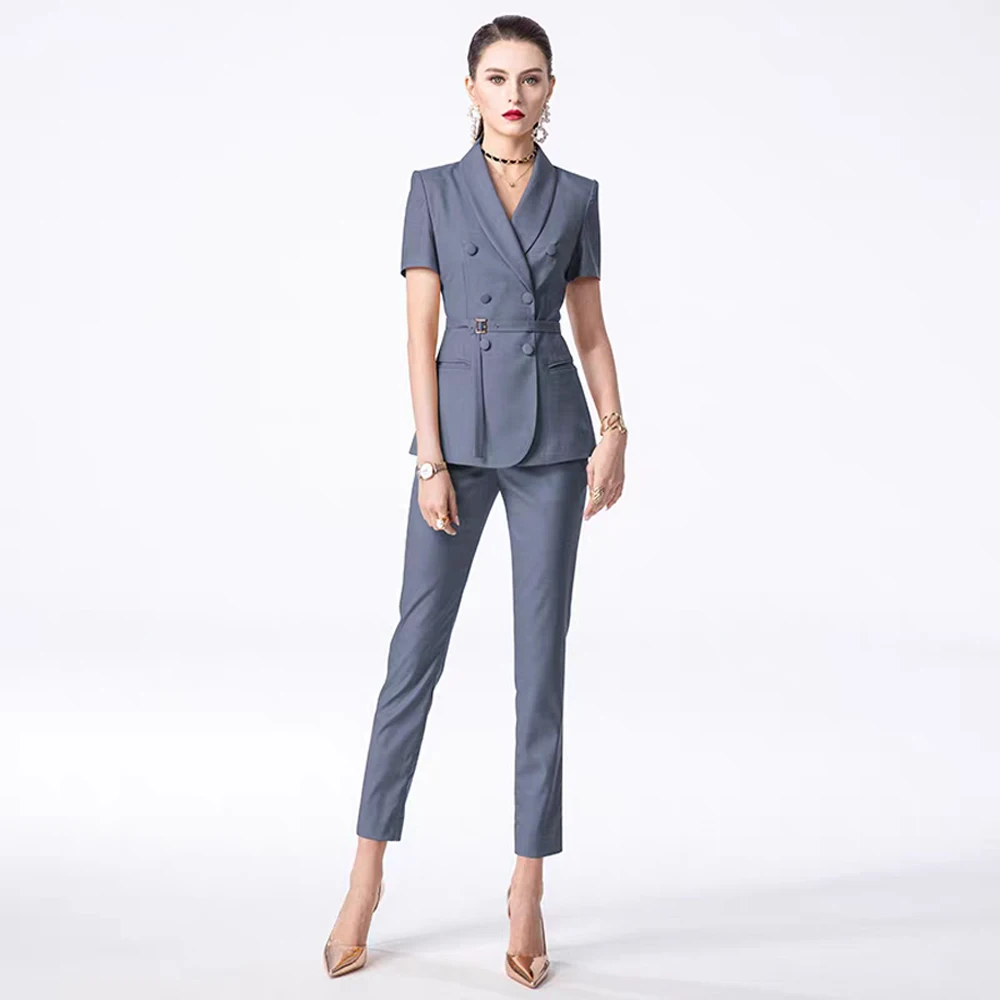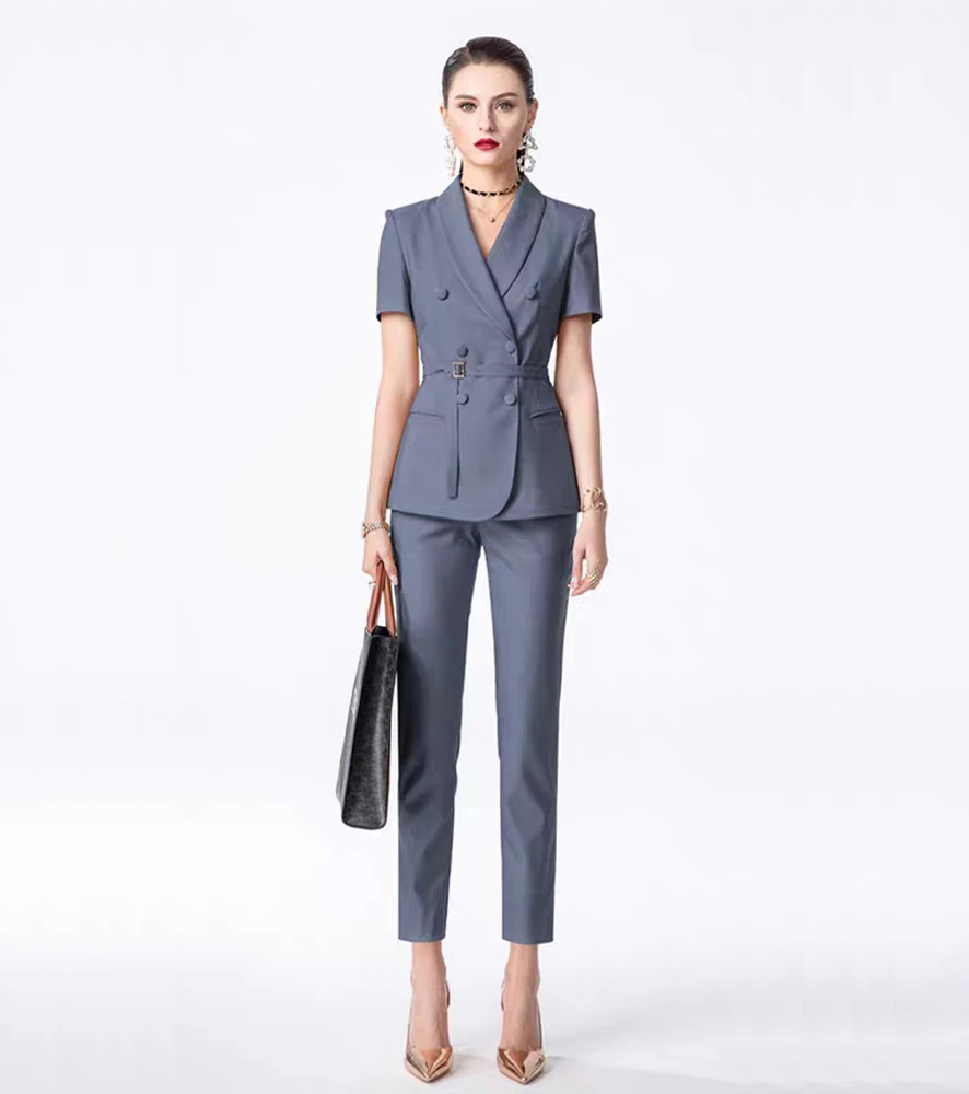 Women's Elegant Office Formal 2-Piece Set Summer Short-Sleeved Nine-Inch Pants Skinny Fit ODM Supplied