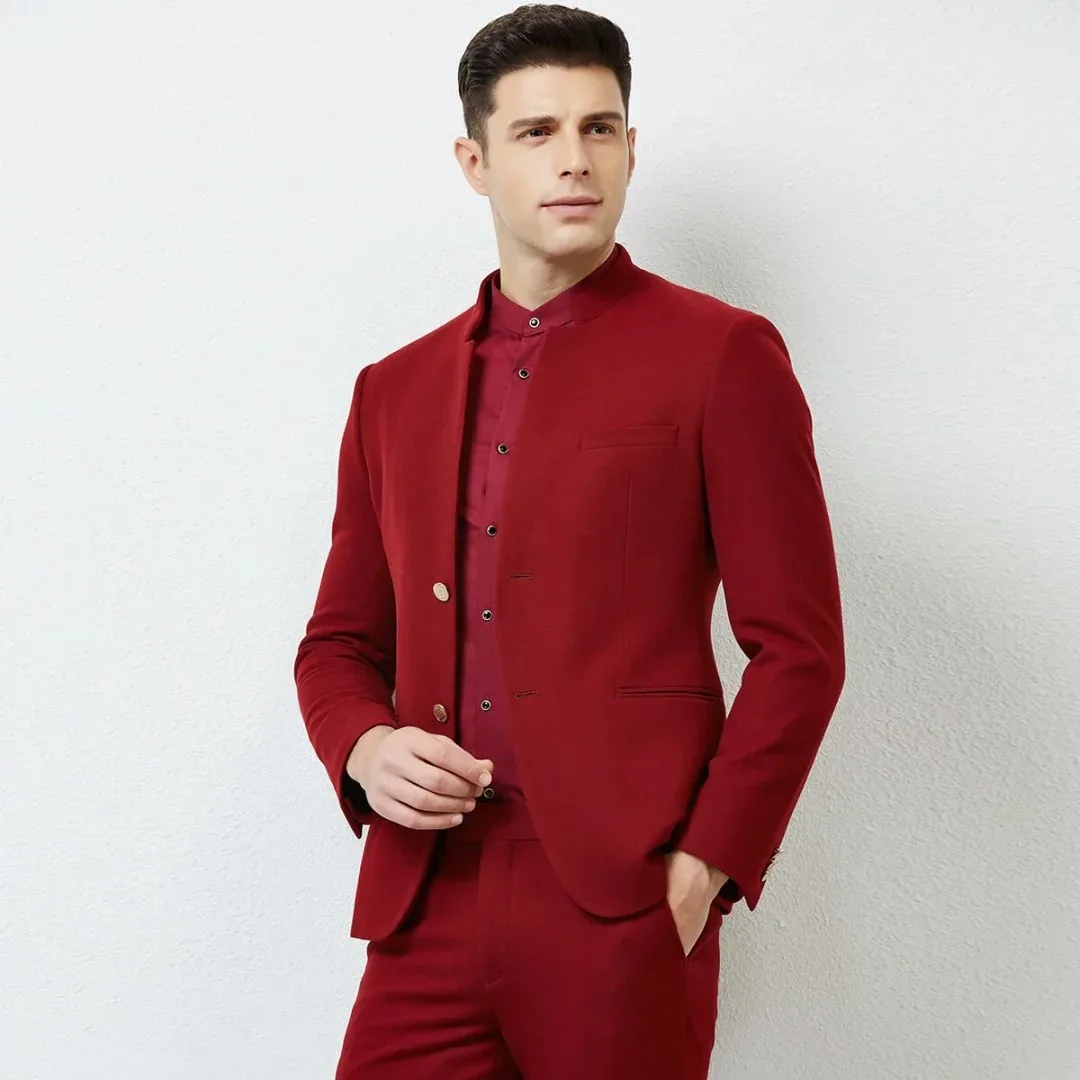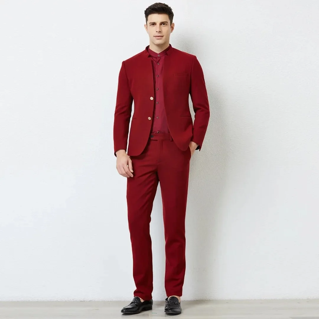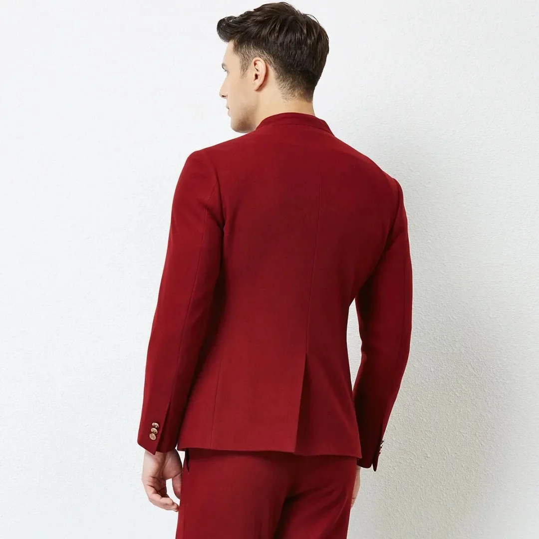 Two Pieces High Quality Men's Slim Haute Couture Red Single-Breasted Wedding Suit Jacket Men's Stylish Red Coat
