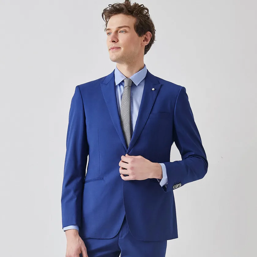 Two-Piece High Quality Sapphire Blue Men's Slim Haute Couture Single-Breasted Suit Jacket Direct Production from Supplier