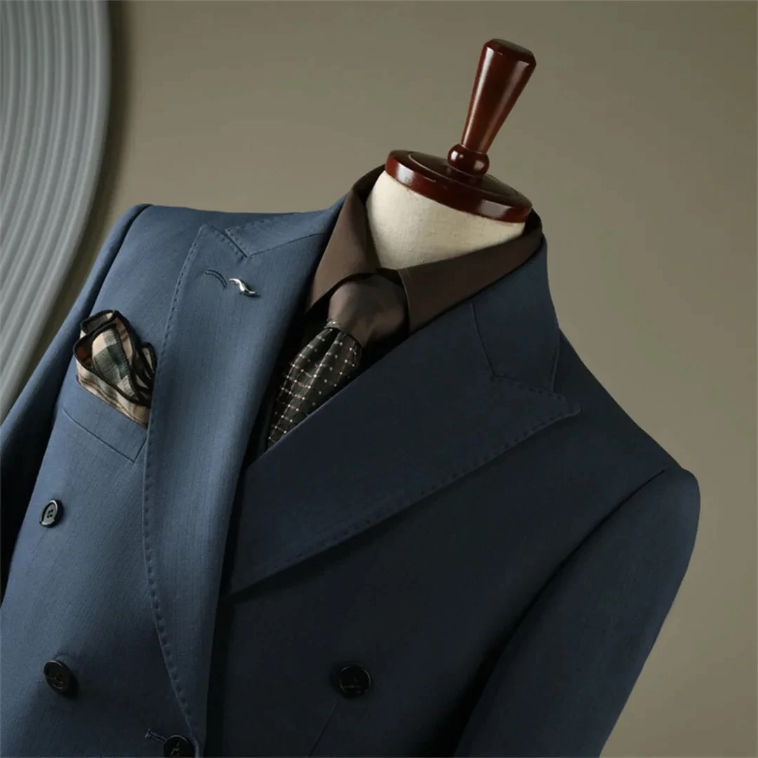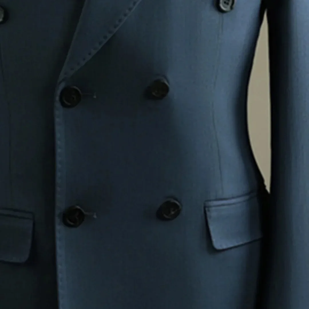 2 Pieces Premium Double-Row Blue Wide Dark Men's Suit Double-Breasted Closure Type