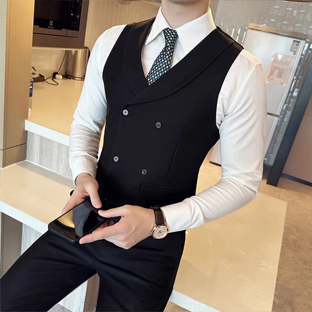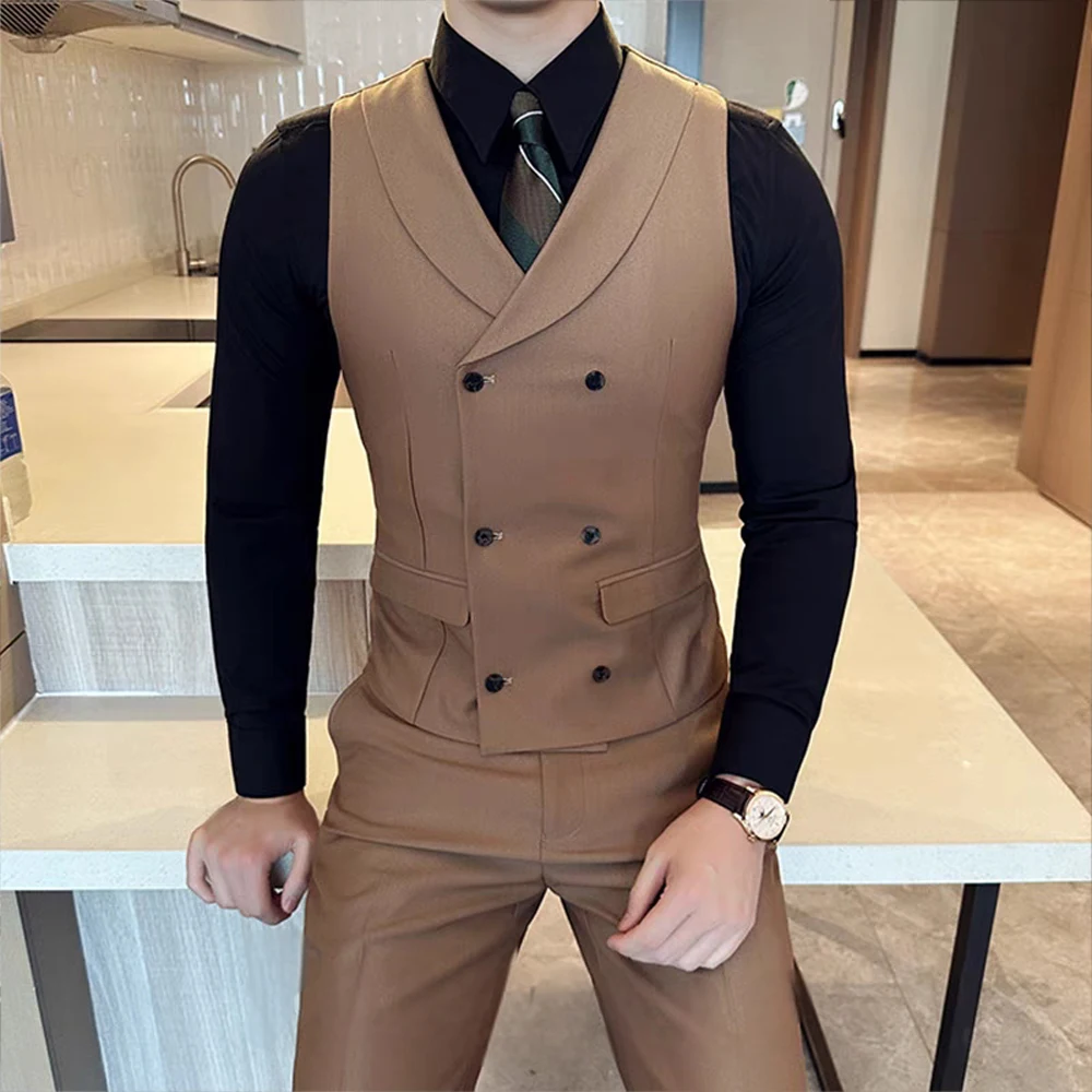 Customizable 2-Piece Set of Men's Slim Fit Double-Breasted Green Fruit Collar Vest Pant Formal Style with Breathable Feature