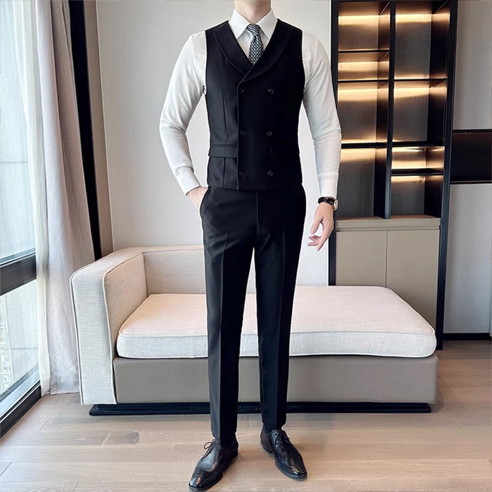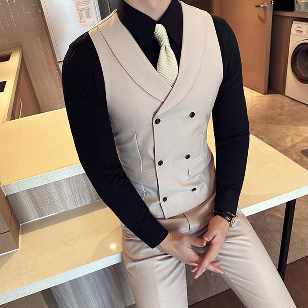 2 Piece Set of Double-breasted Green Fruit Collar Vest and Pant Can Be Customized for Men Slim Fit