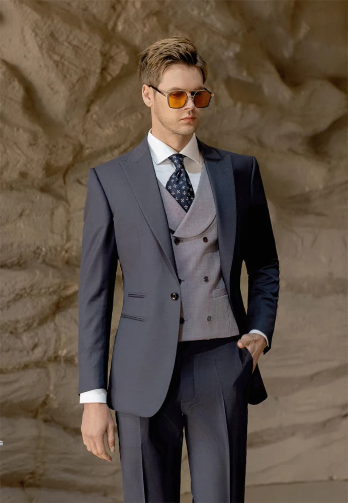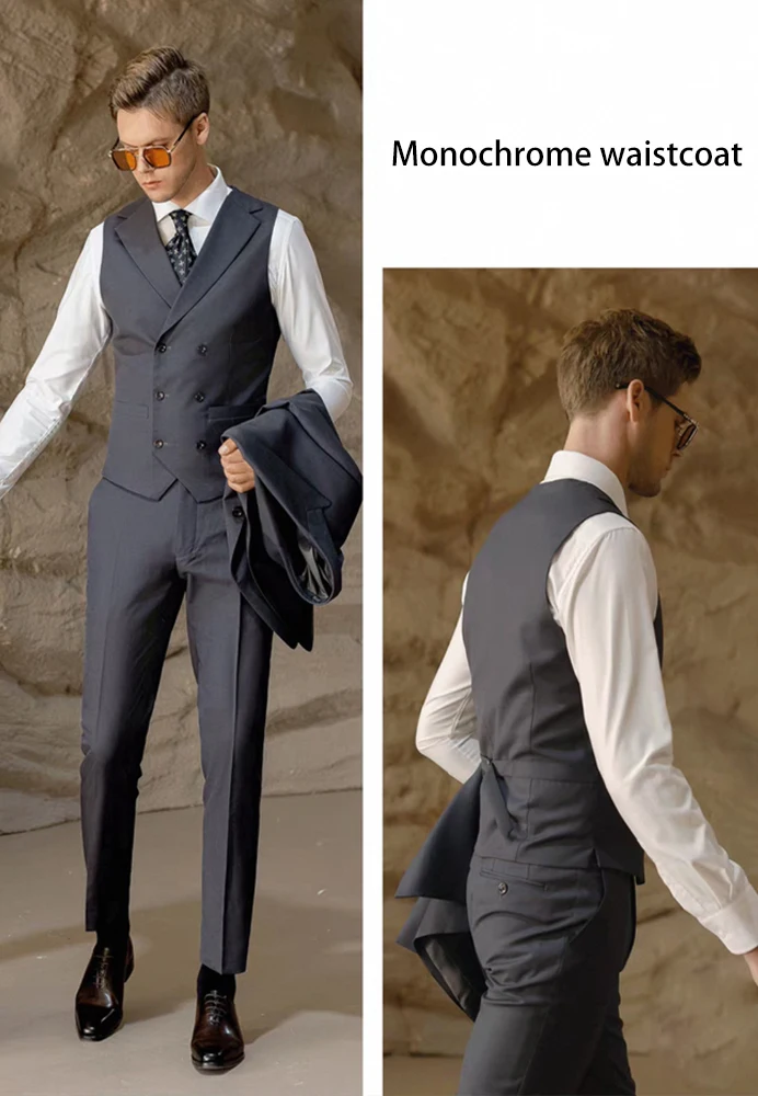 3 Pieces Iron-gray One-button Gun-shaped Lapel Suit Pants and Vest Set Customizable High Quality for Mature Man Suit