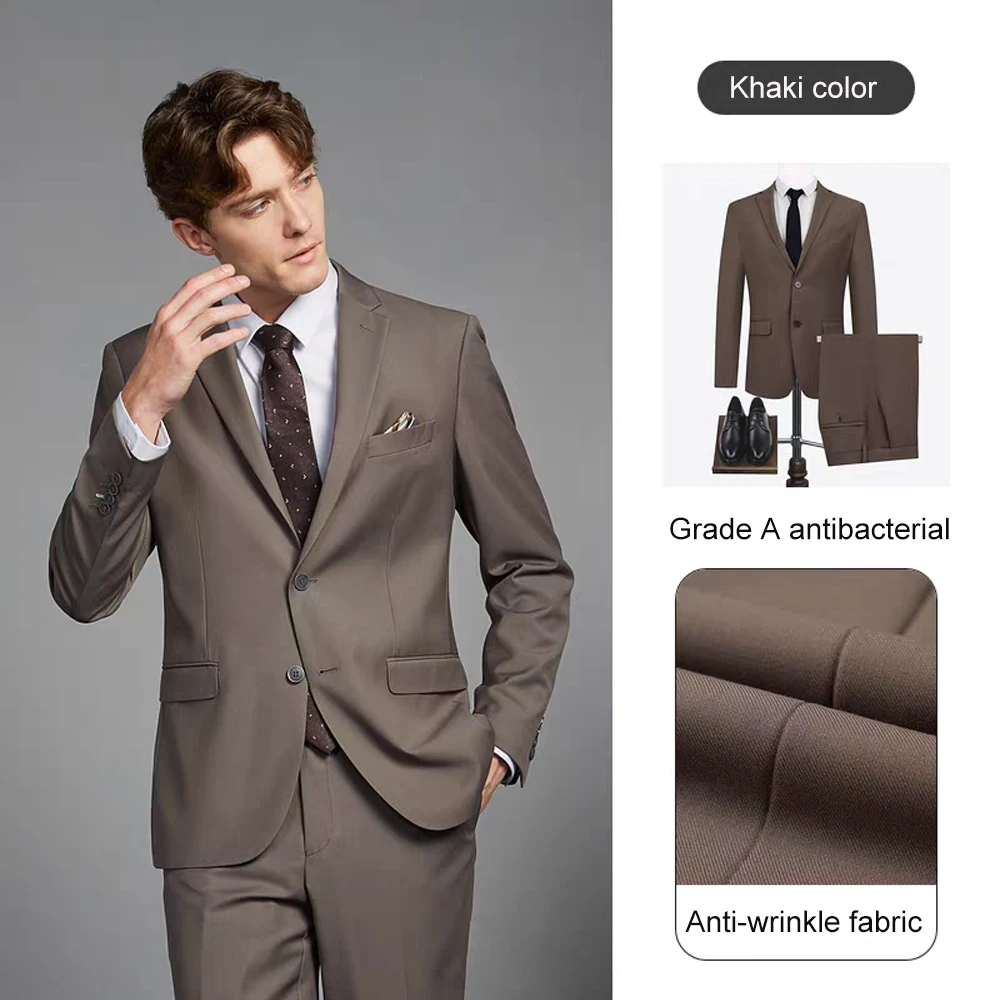 Men's Business Casual 2-Piece Suit with Two Buttoned Flat Lapels Breathable Graduation Attire