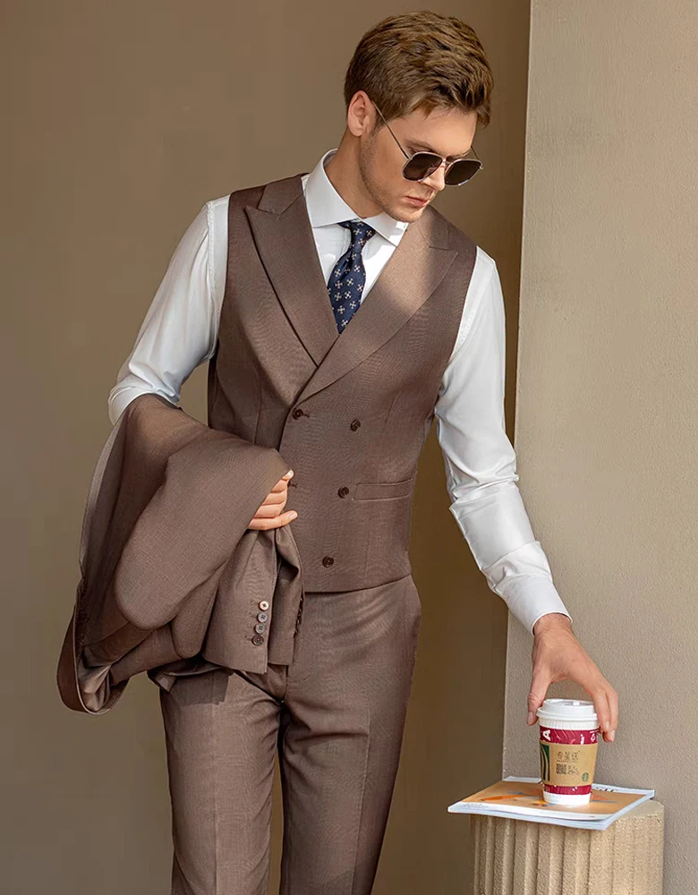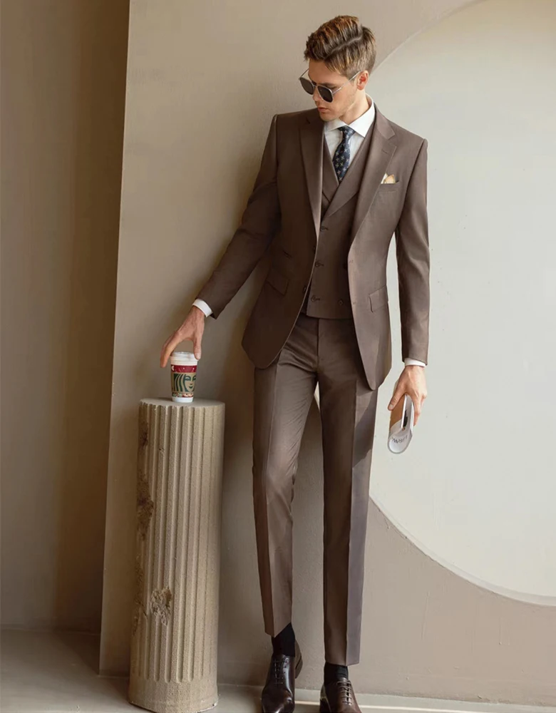 Men's 3-Piece Business Formal Suit with Two-Button Flat Lapel Trousers Waistcoat Breathable Outerwear