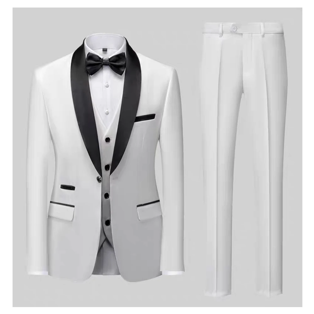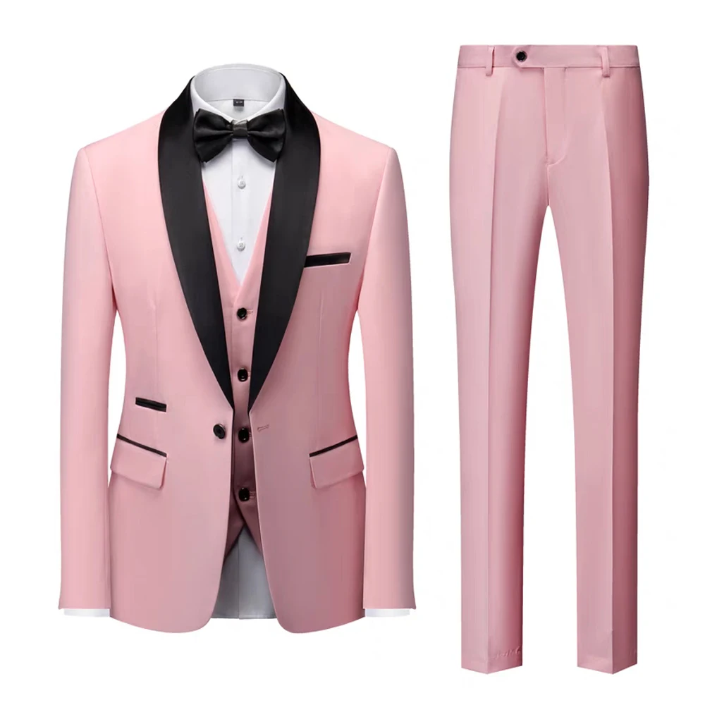 Best Man and Host Wedding Suit Black Green Fruit-Neck Waistcoat with Long Pants Jacket Breathable Business Style