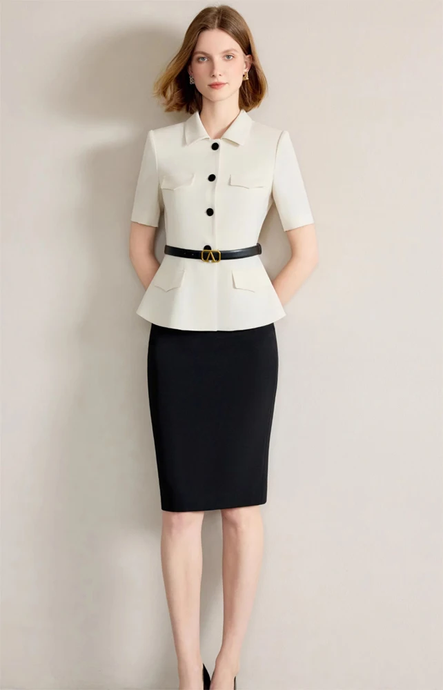 Summer High-End Professional Skirt Suit Short-Sleeved and Formal Skinny Fit Above Knee Length for Workplace Wear