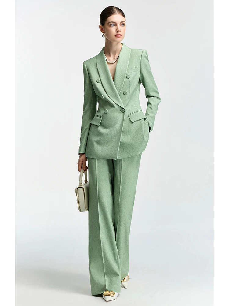 Women's British-Style Double-Breasted Trousers Set Fruit Green Slimming Business Casual 2-Piece Suit & Blazers