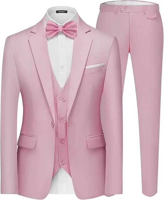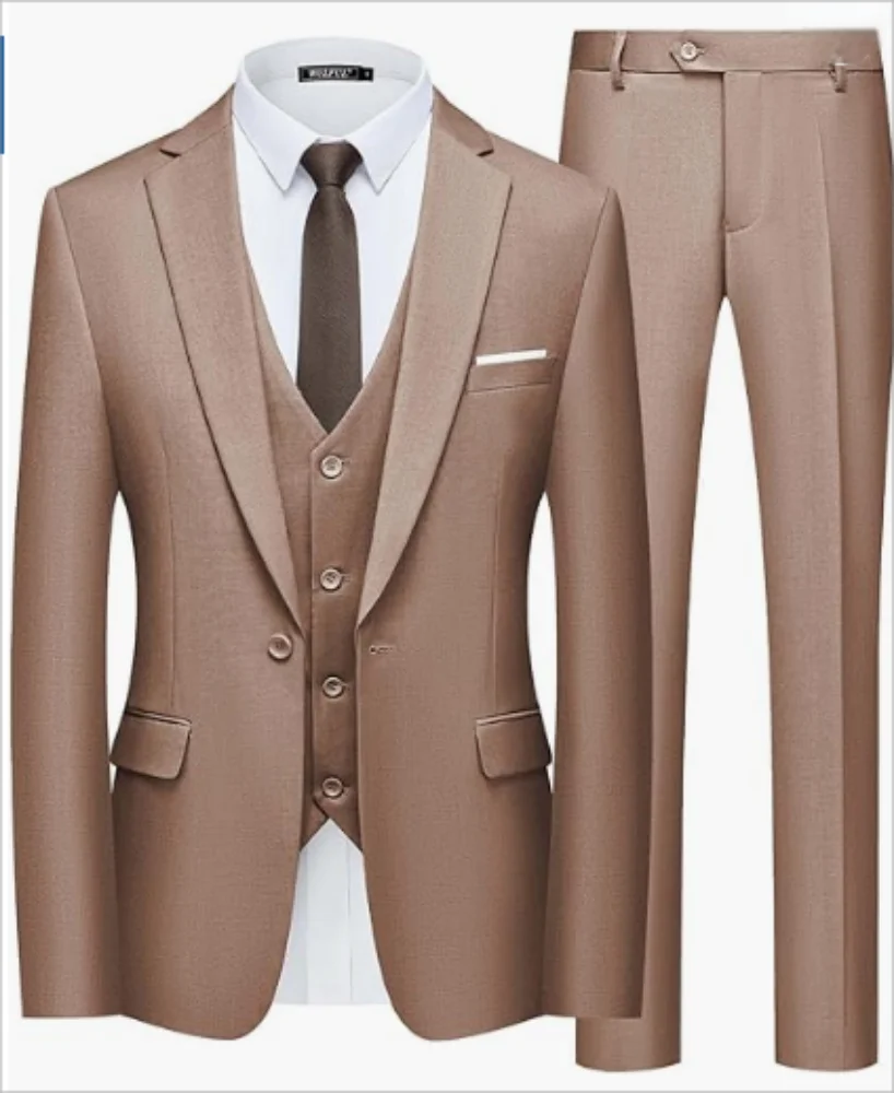 3-Piece Slim Fit Multi-Color Business Suit Customizable Formal Wedding Outfit Button Zipper Closure Plus Size Available Sale