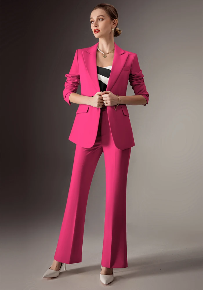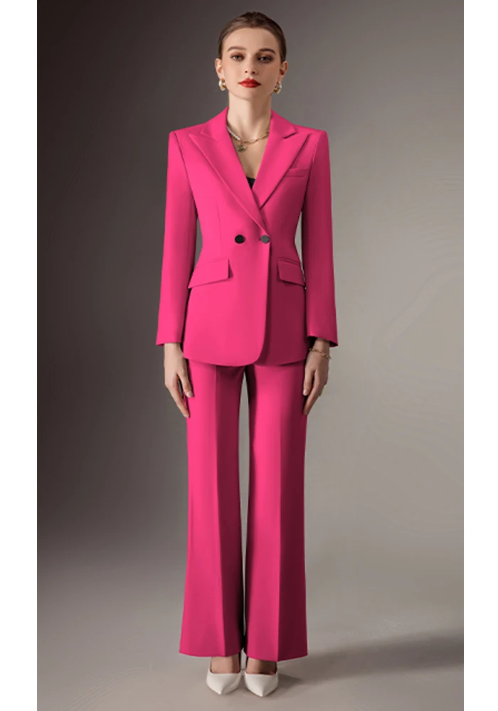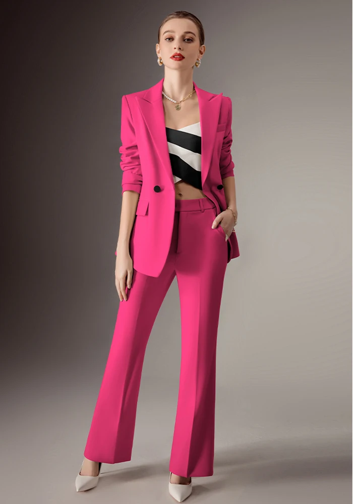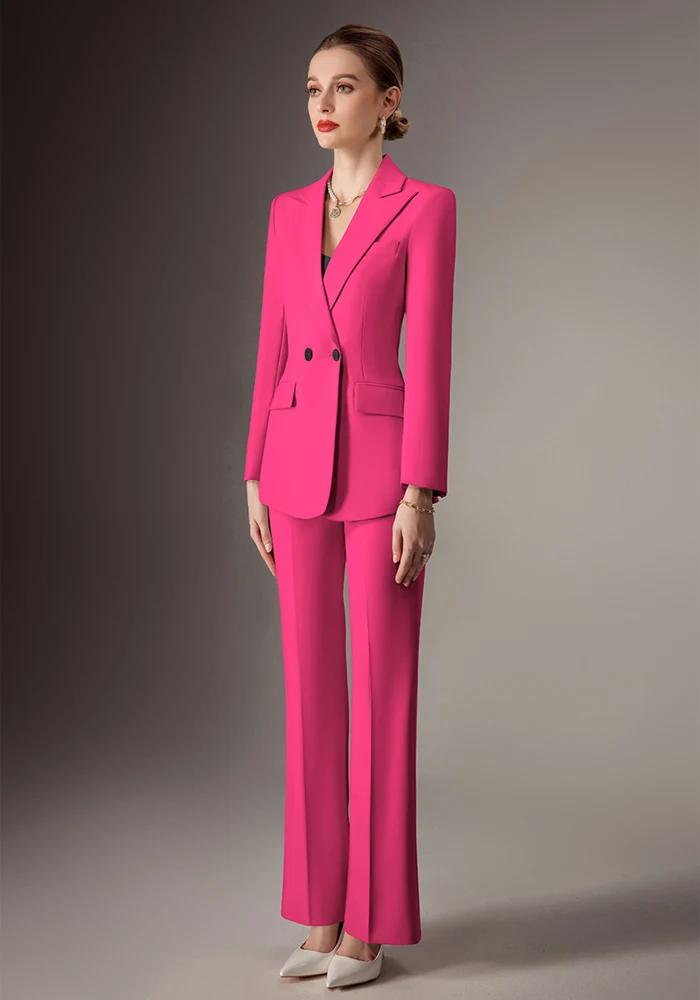 Latest Ladies Office Suit Design Double-Breasted 2 Piece Set in Pink and Black Women's Suits & Blazers