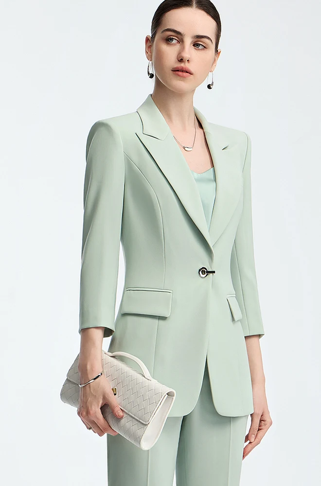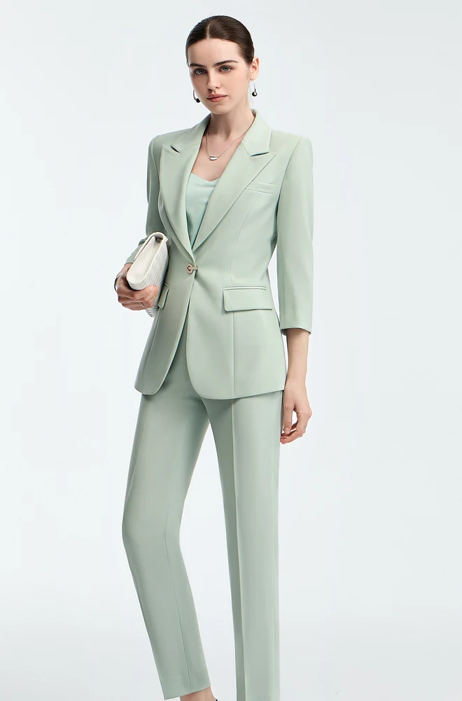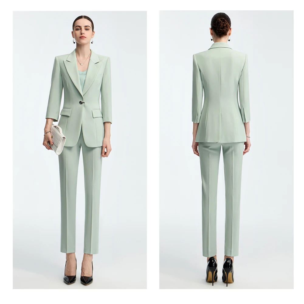 Customizable Light Green Nine-Inch Women's Office Suit 2-Piece Blazer Pants Set Business Casual Style