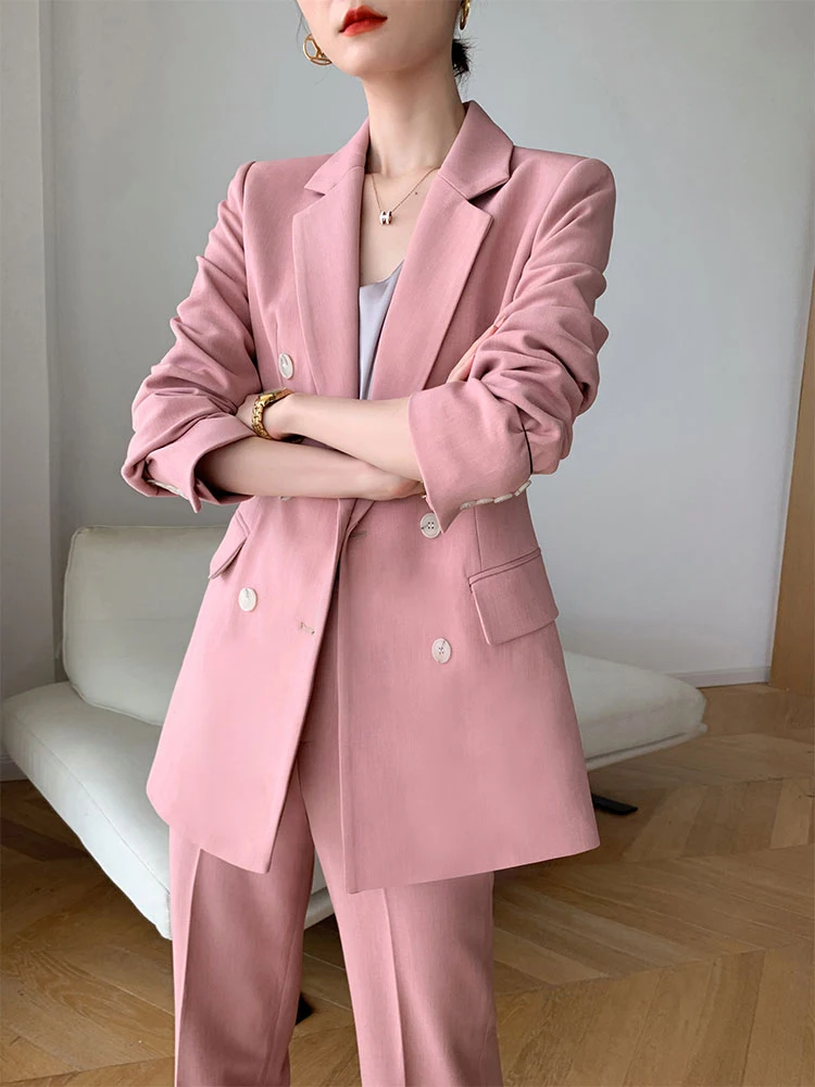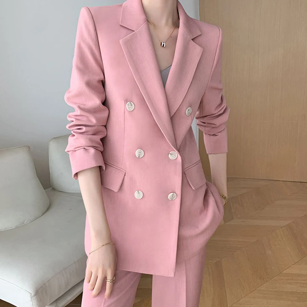 Pink and Black Double-breasted 2 Piece Set Ladies Office Suit Latest Ladies Salwar Suit Design