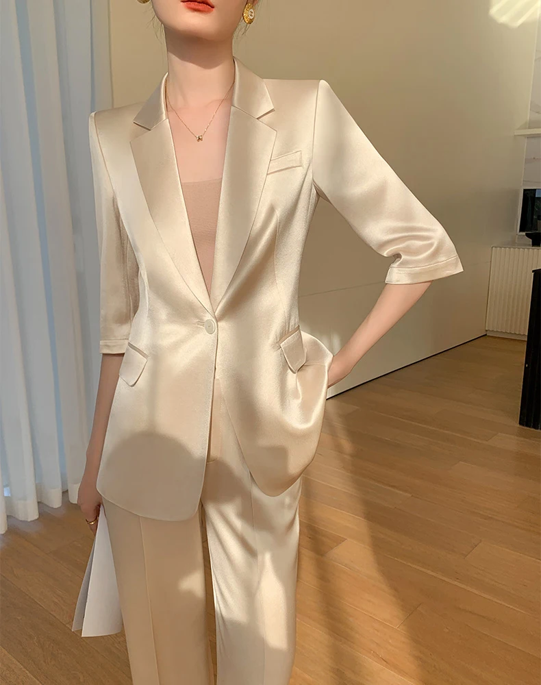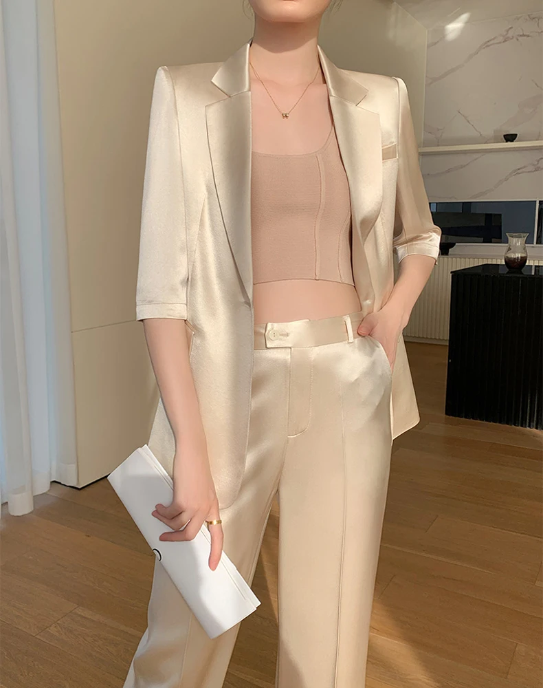 Elegant Champagne Women's Office Dress and Blazers Formal Suits for Business Wear 2 Price Options