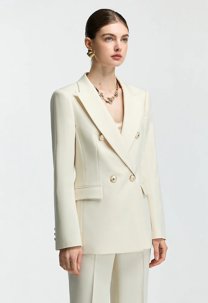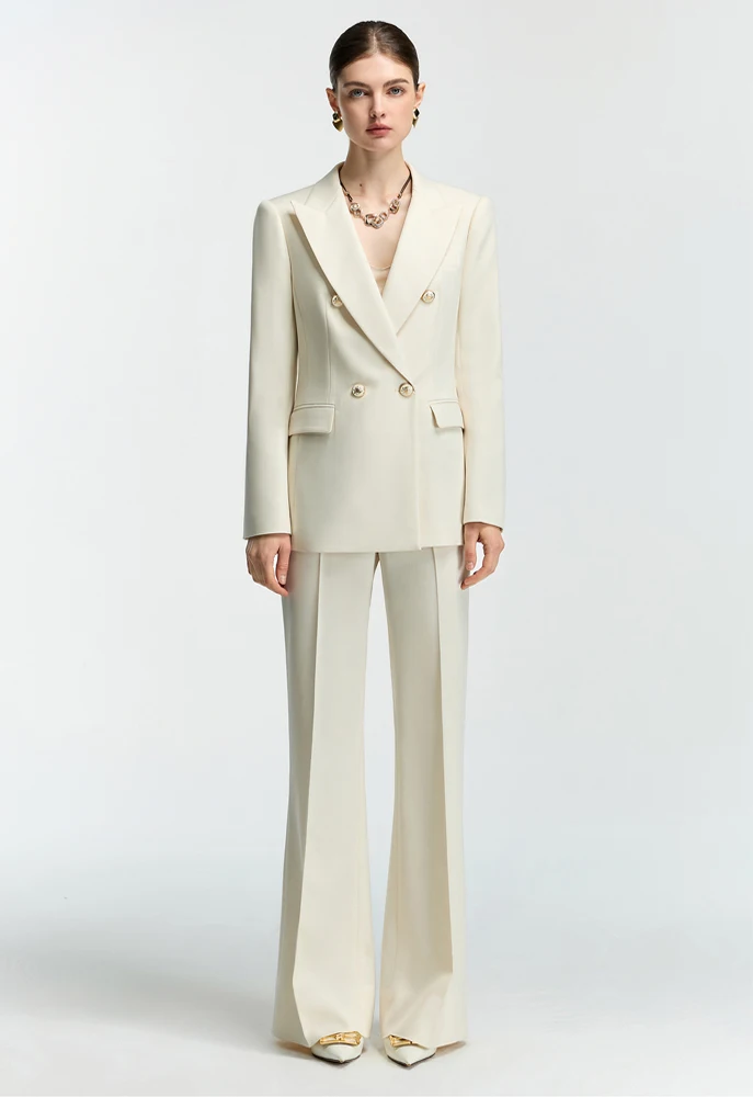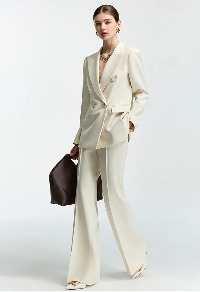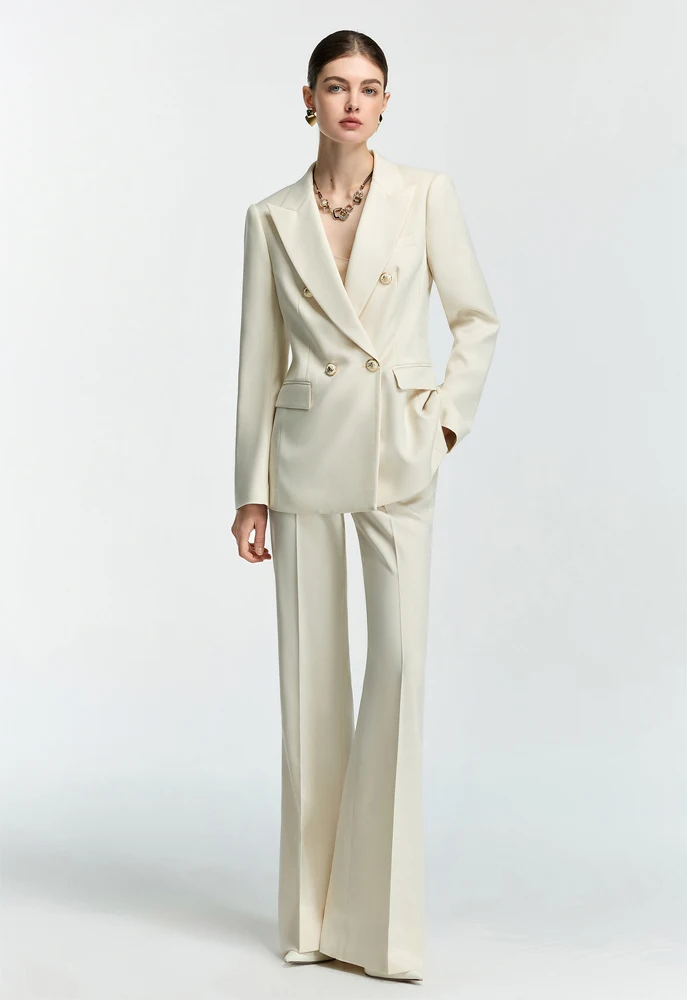 2 Piece Beige Professional Business Outfit Host Photogenic for Women's Classy Slim Suit