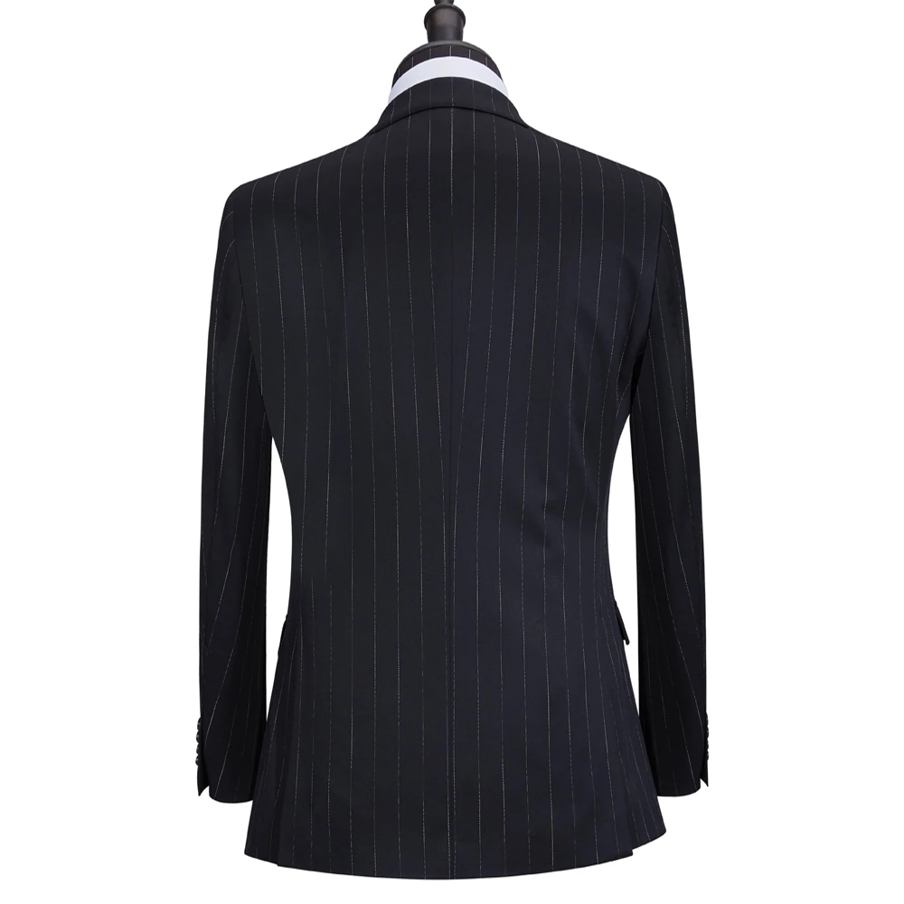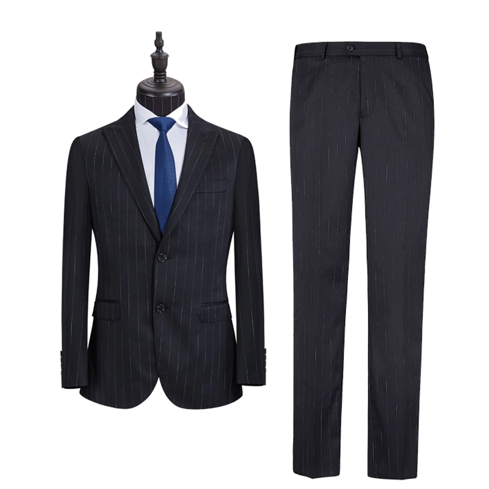 New Design 2-Piece Black Striped Business Suit for Men Custom-made Fitted Clothing Breathable and Comfortable