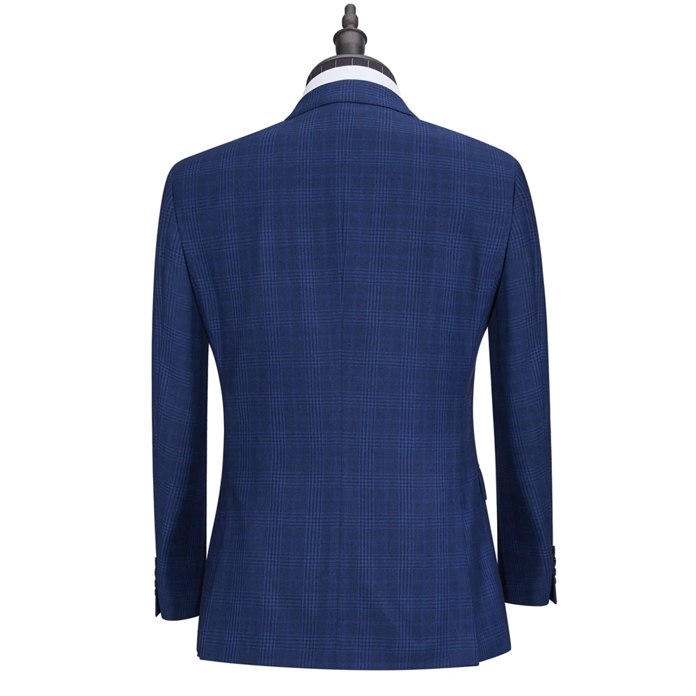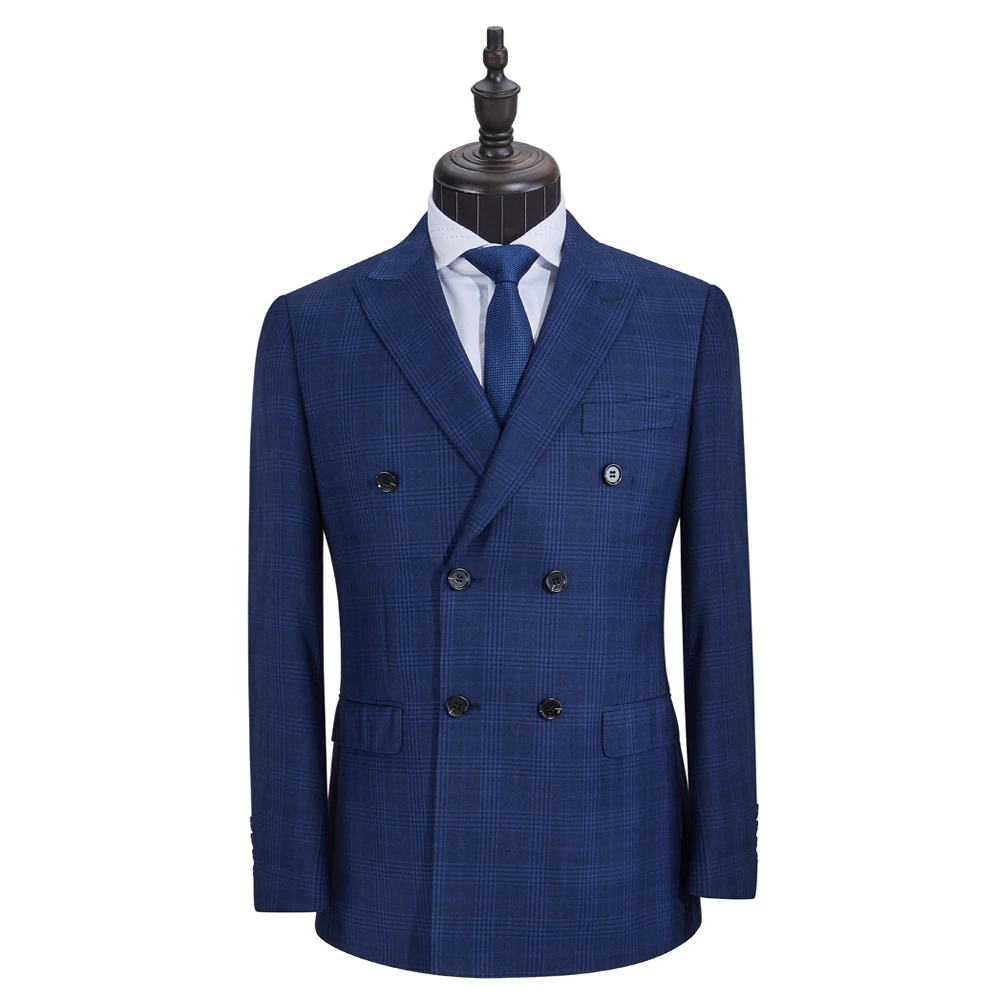 Dark Blue Checkered Double-breasted 2 Piece Set Suit Formal Business Office Men Suits Manufacturer