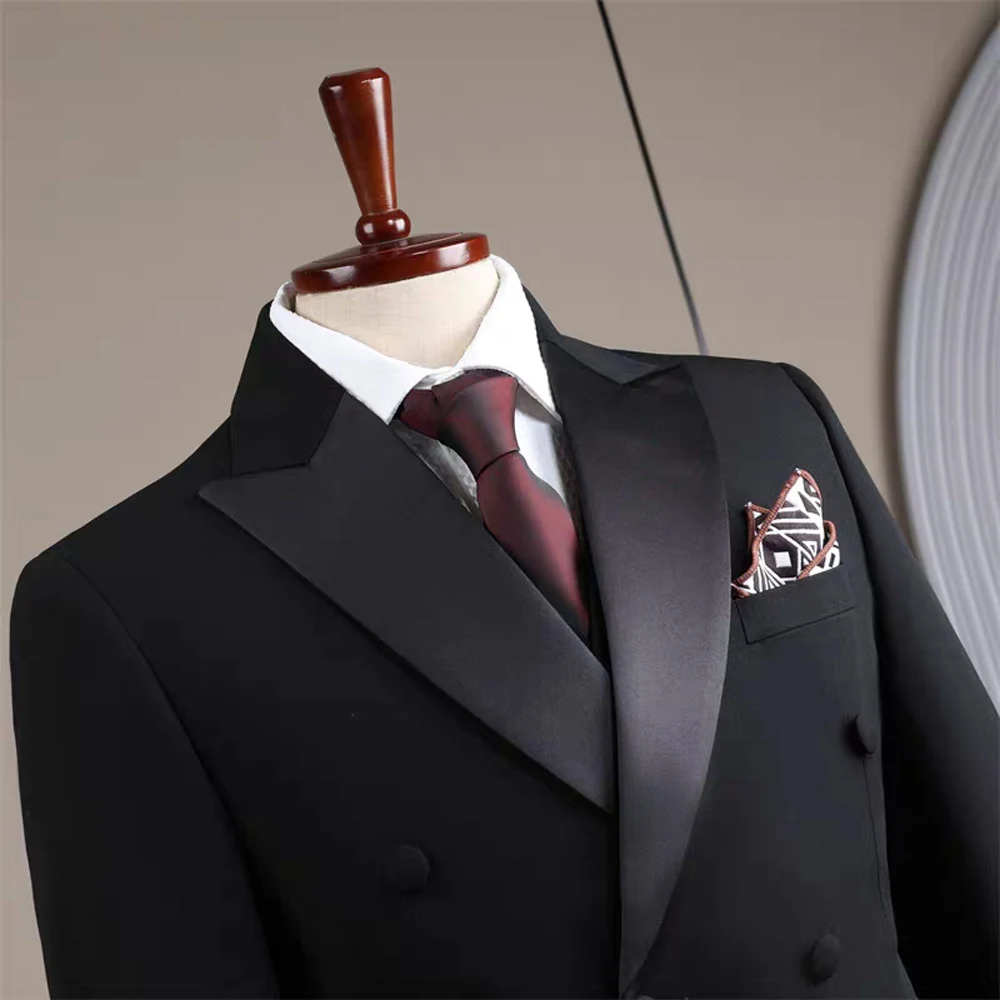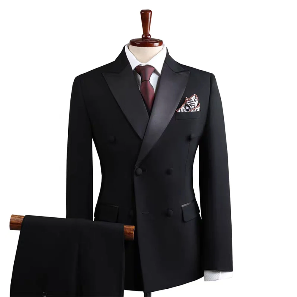 Manufacturer Customized High Quality Men's Slim Fit 2-Piece Business Suit Black Double Breasted Breathable Worsted Wedding