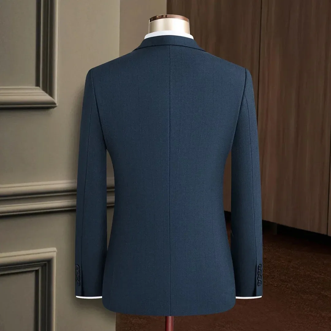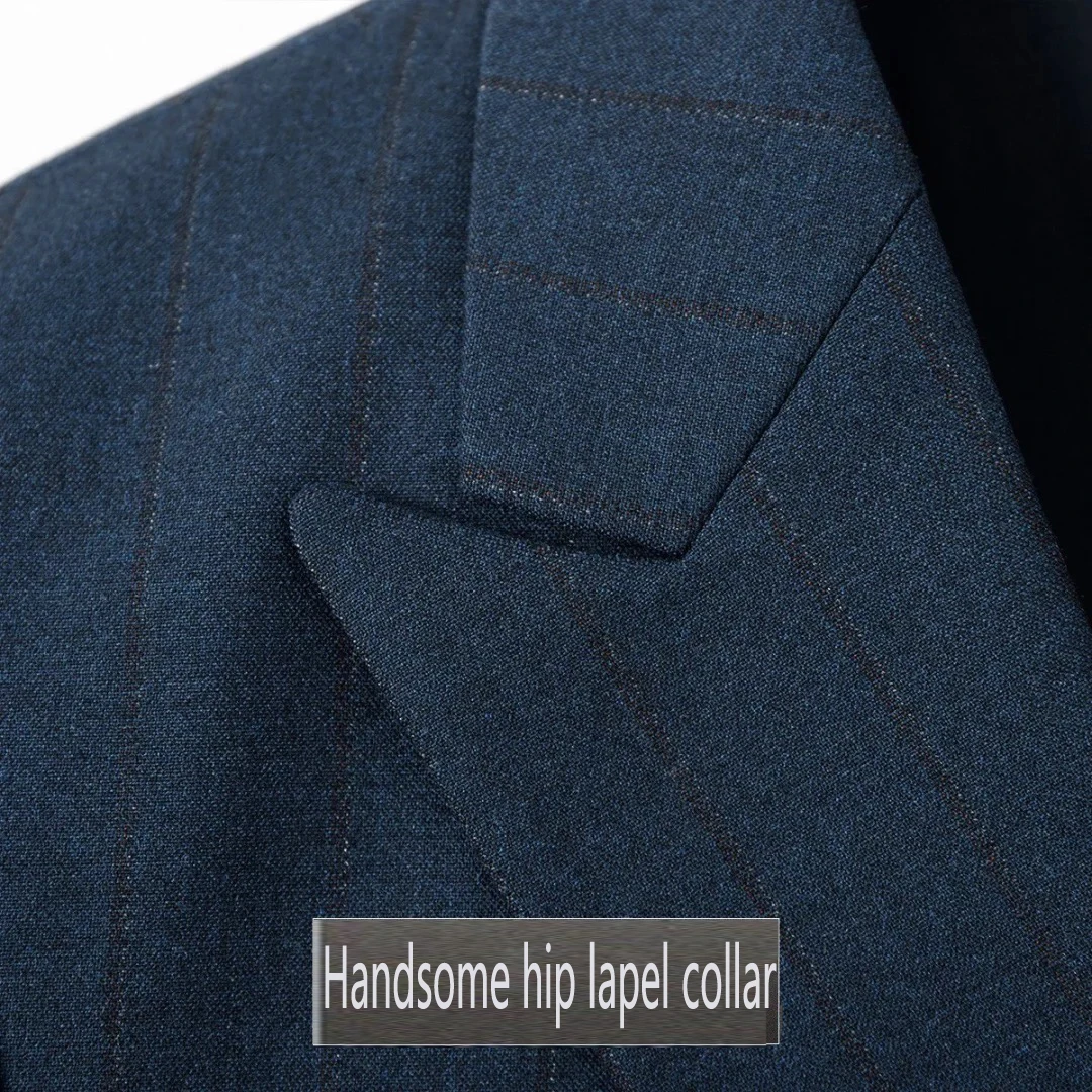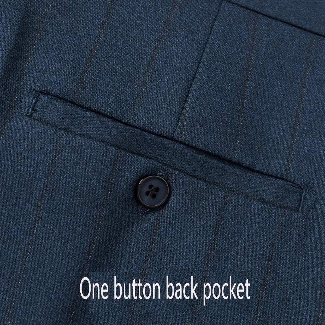 Men's Premium Double-Breasted Tailored Suit Striped Blue Wide Dark 2-Piece Set Handmade by Producer