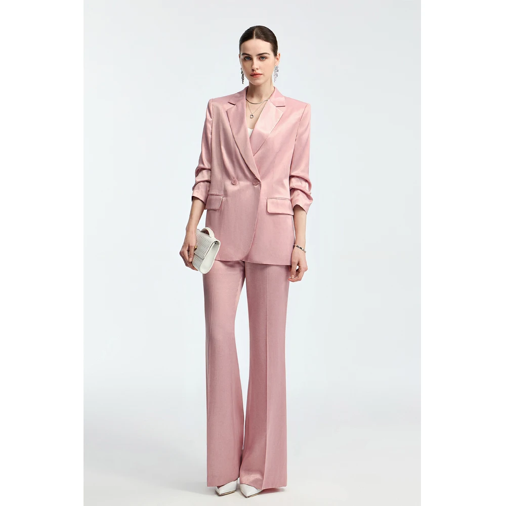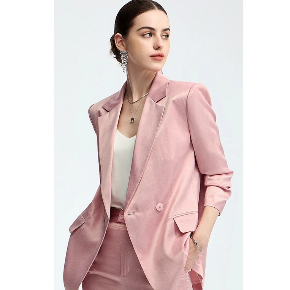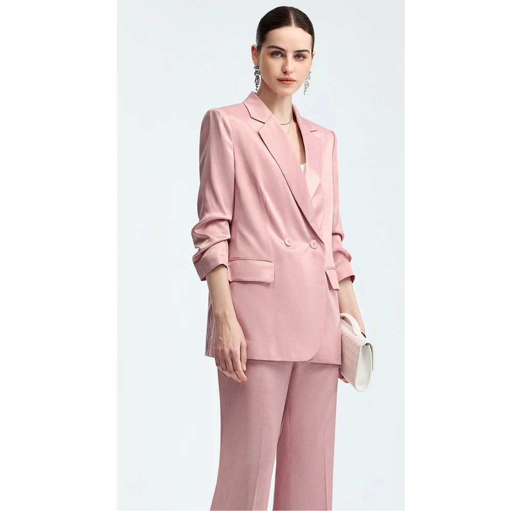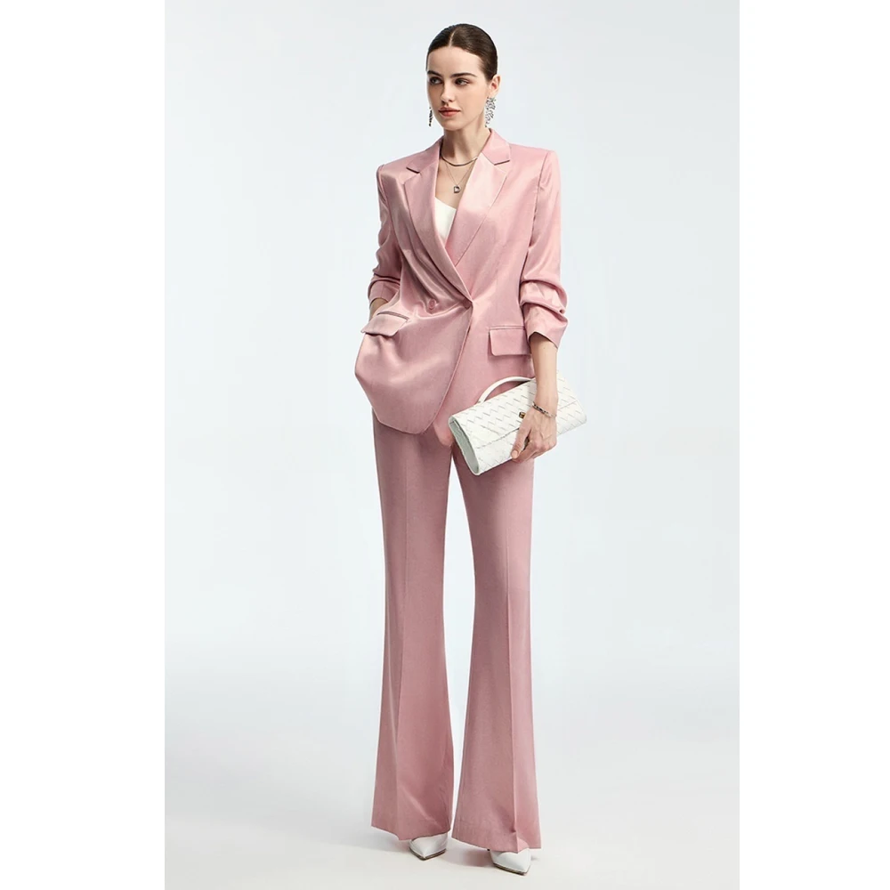 2 Piece Pink Slim Classy Suit for Women Professional Business Outfit Host Photogenic for Spring Fashion