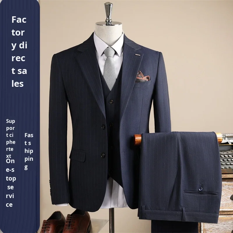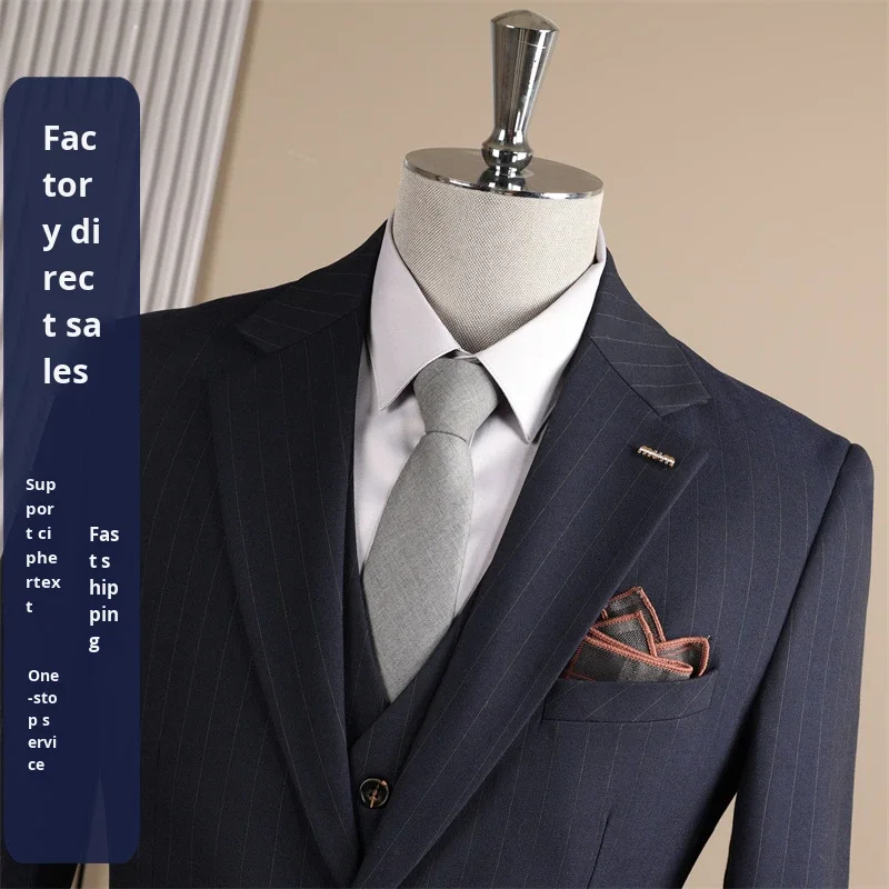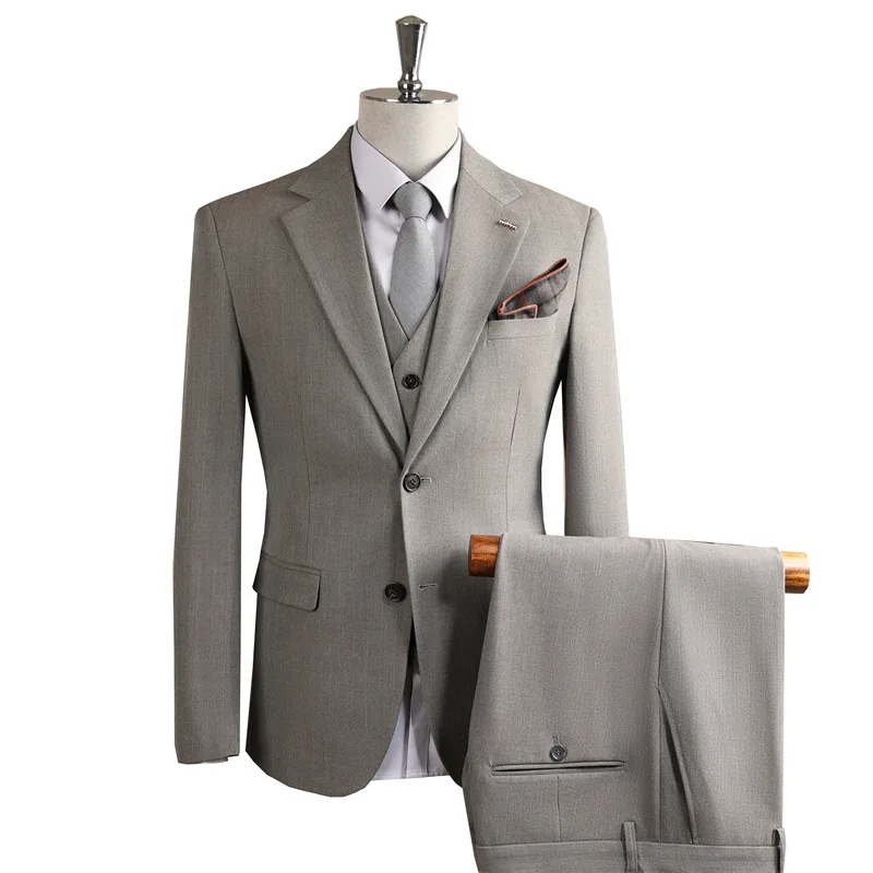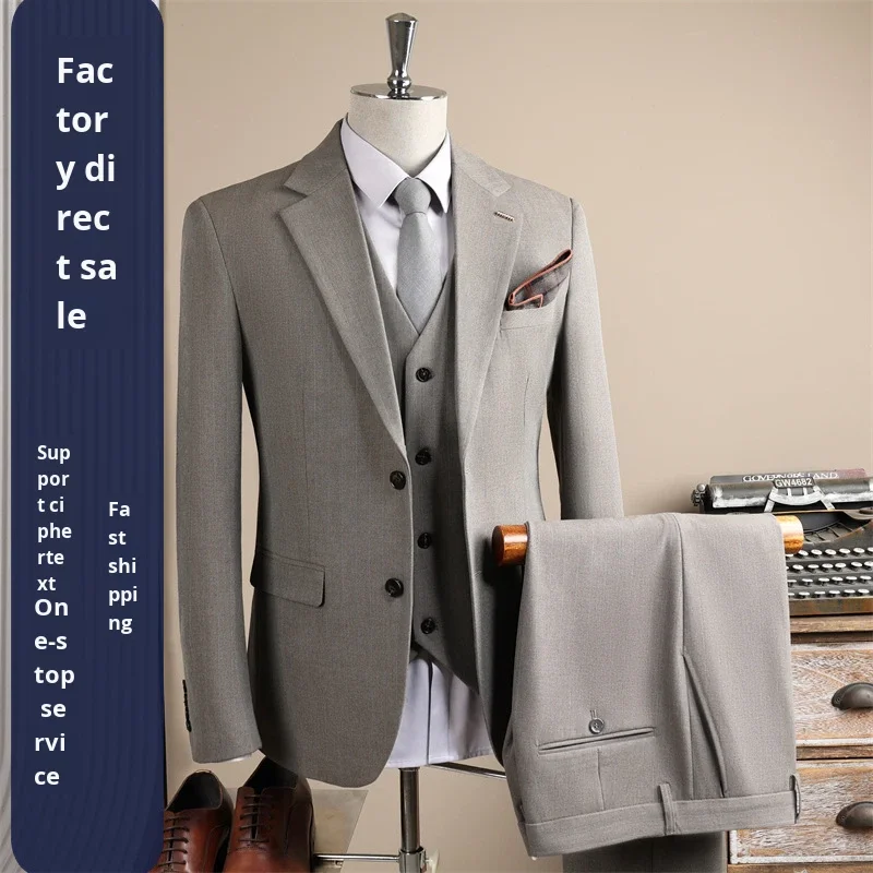 High-End Single Breasted Slim Fit Suit Men Wedding Groom Formal Business Worsted Fabric Anti-Shrink Anti-Wrinkle Work Interview