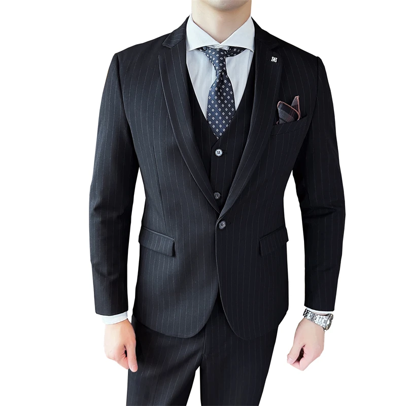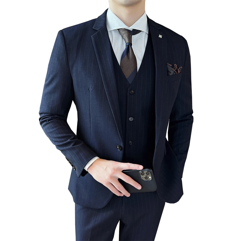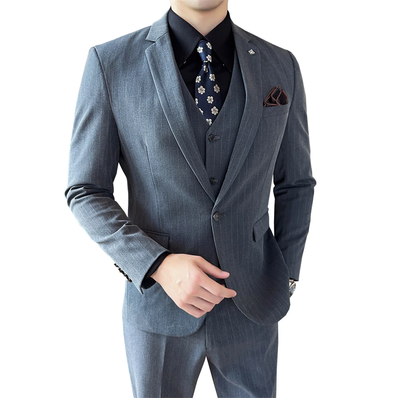 Korean Slim Men's Suit Set Best Man Groom Wedding Attire Single Breasted Business Suits Zipper Fly Front Style Anti-Wrinkle