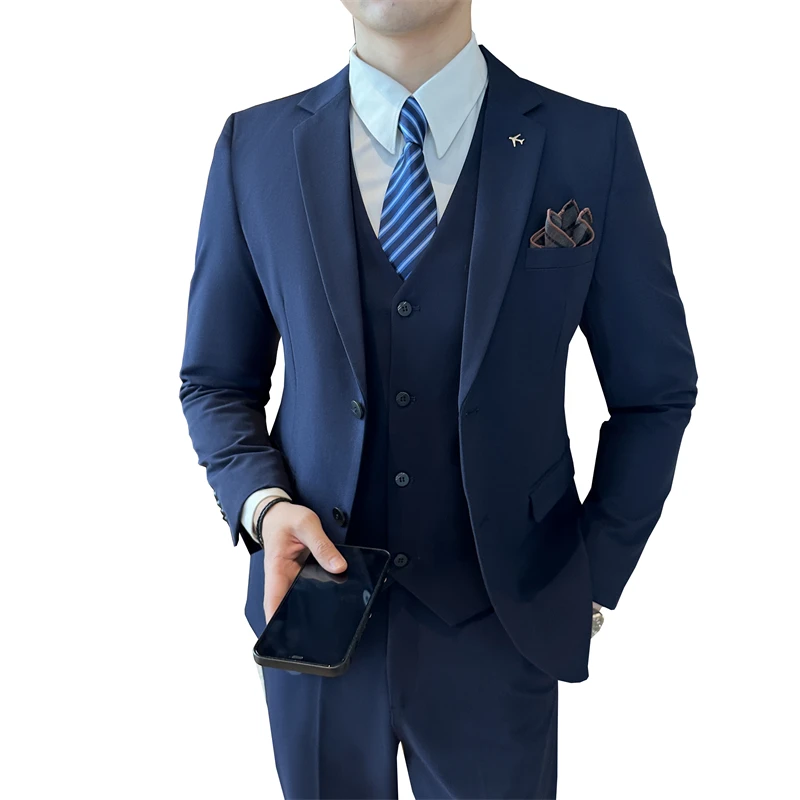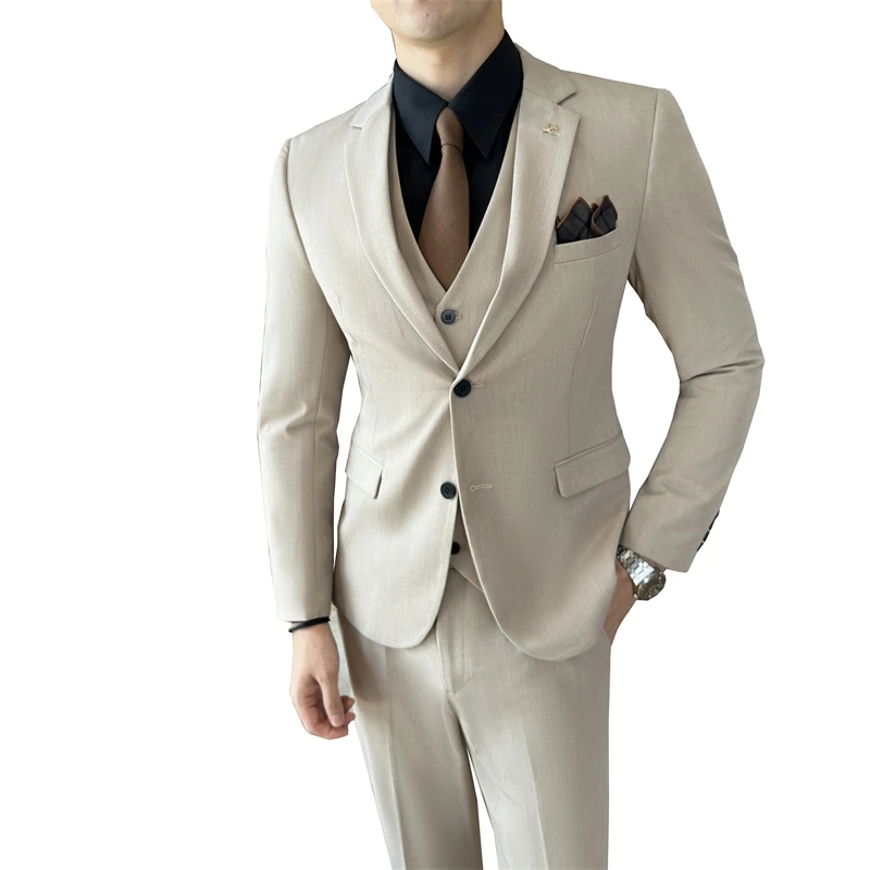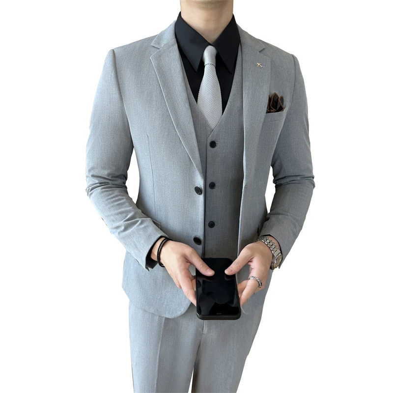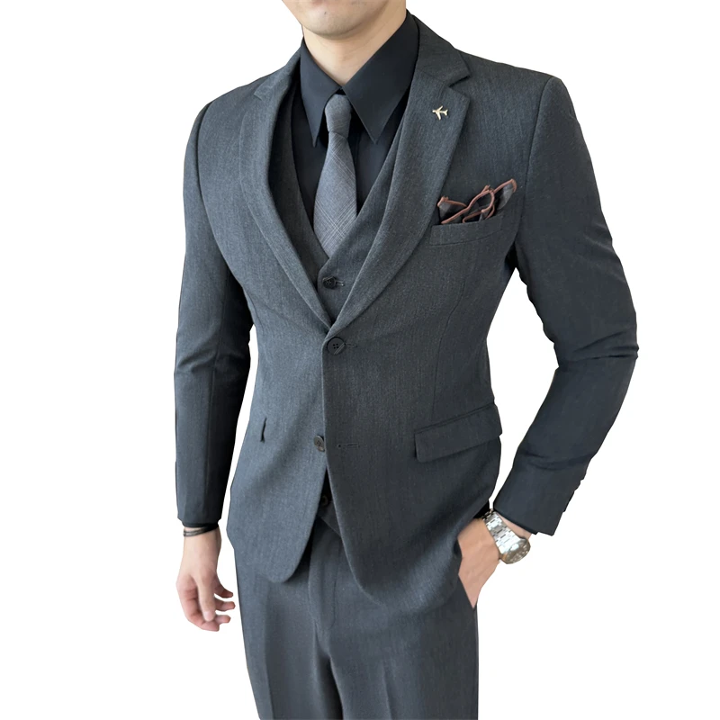 Men's Plus Size Elegant Slim Fit 3-Piece Italian Tuxedo Set One Button Notched Collar High-End Solid Jacket Double Breasted Vest
