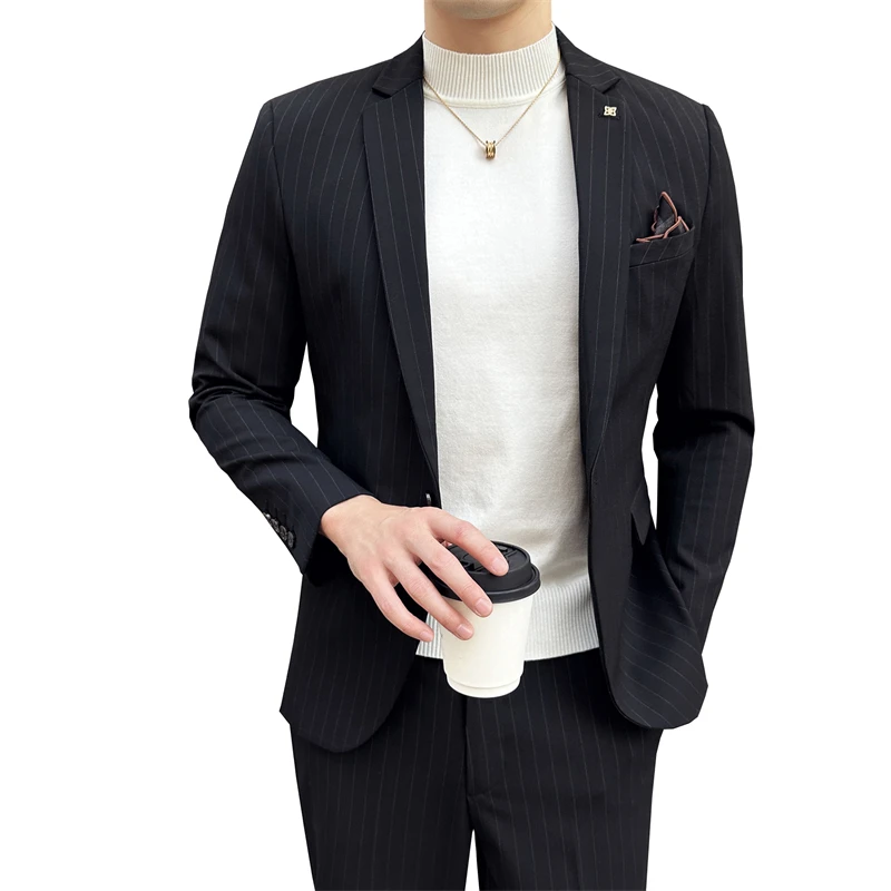 Men's Vintage Business Suits Loose Hipster Elastic Pants Wide Bottom High Waist Trouser Anti-Wrinkle Viscose/Polyester Matching