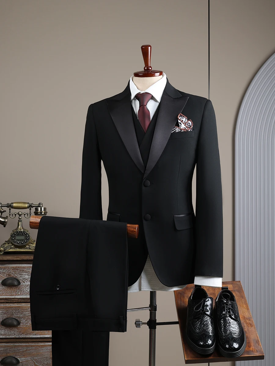 Men's Slim Single Breasted Business Suit Worsted Wedding Groom Groomsman Host Dress Anti-Shrink Anti-Wrinkle Notched Collar