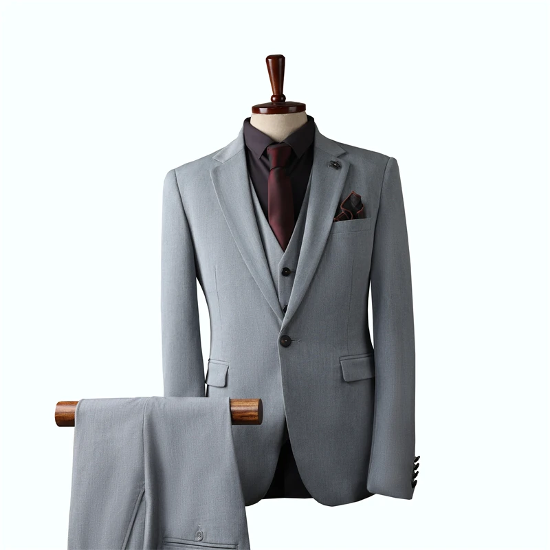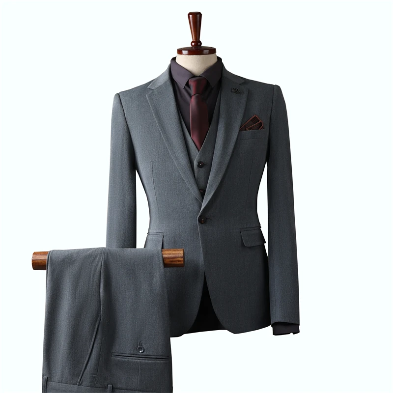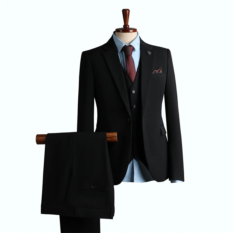 Men's Plus Size Slim Fit 3-Piece One Button Solid Single Breasted Anti-Wrinkle Wedding Business Party Suit Jacket Pant Set