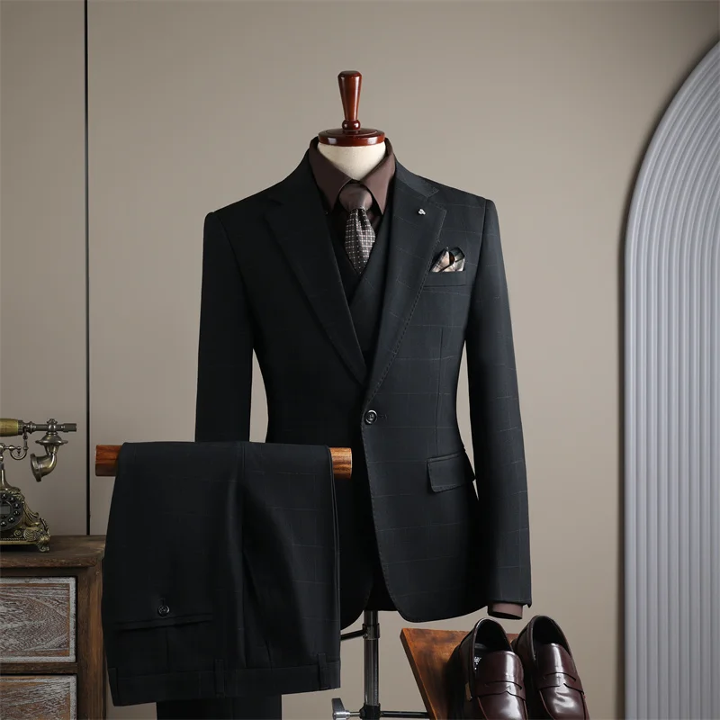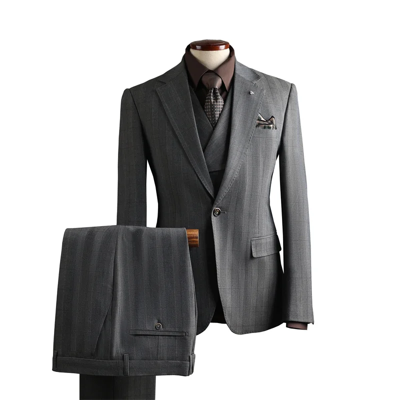 Wholesale Men's Business Casual Banquet Wedding Dress Professional Formal Pants Suits Single Breasted Closure Zipper Fly Front