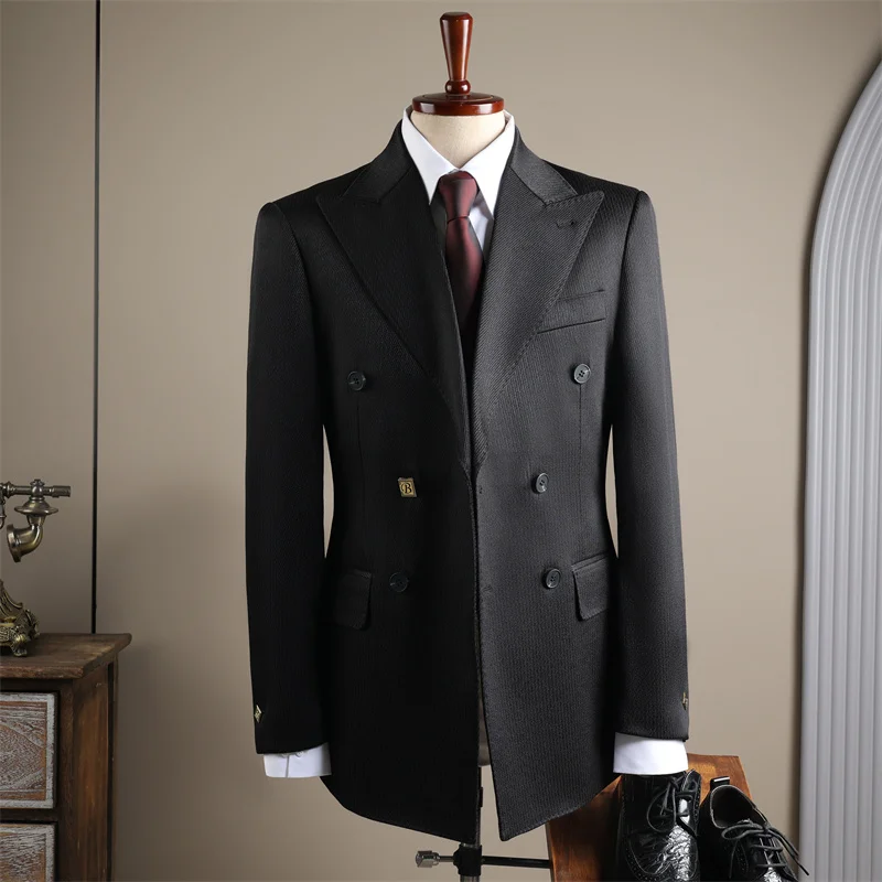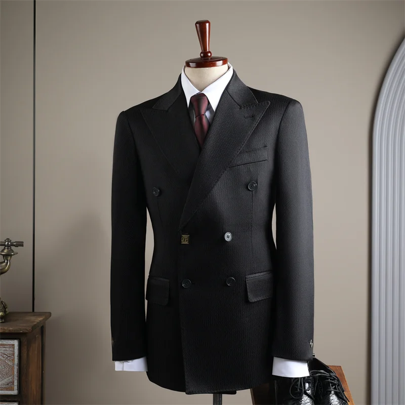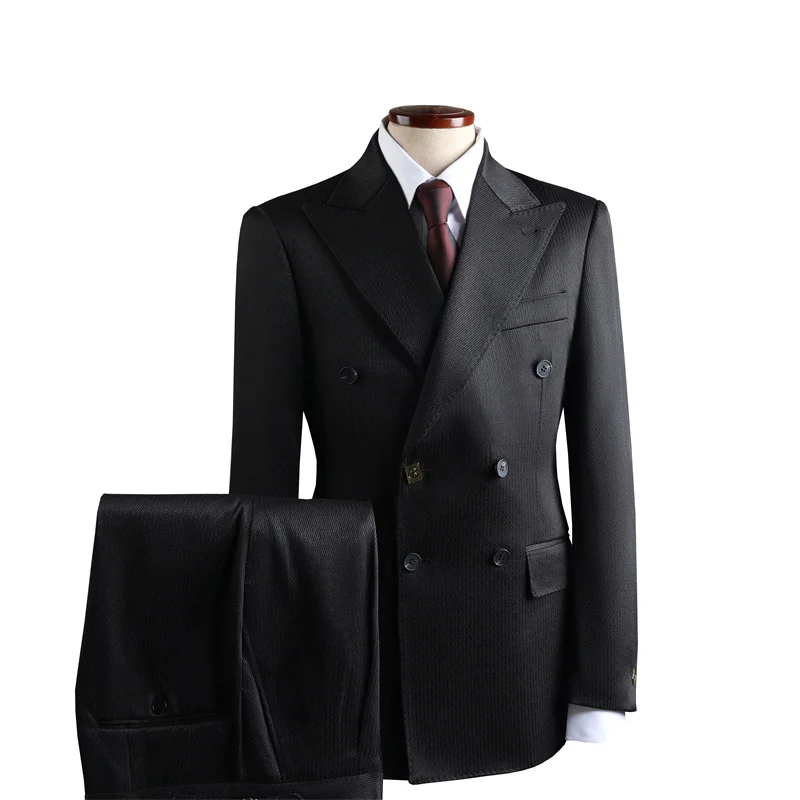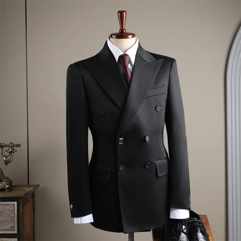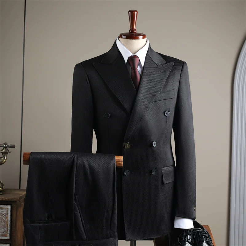 Designer Double-Breasted Men's Flat Front Pants Suits Large Lapel Formal Wear Anti-Shrink Anti-Wrinkle for Weddings Banquets