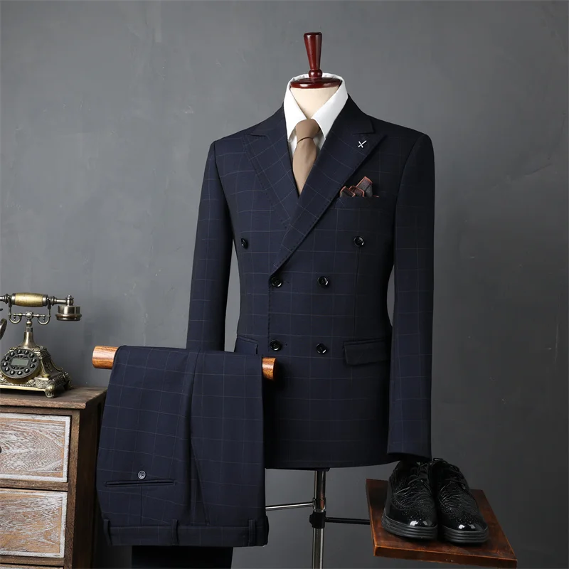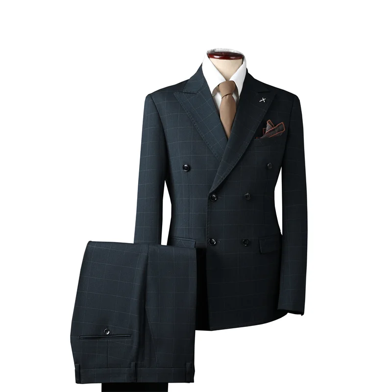 Men's High Quality Slim Fit Gray Business Suit Double-Breasted Professional Dress for Casual Wear Weddings Blazer