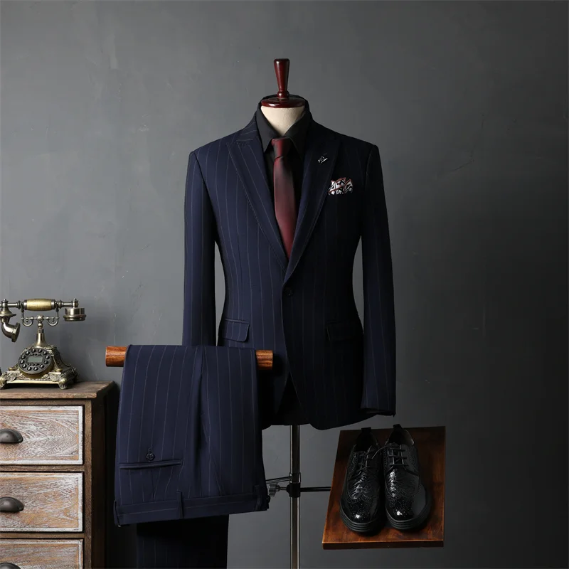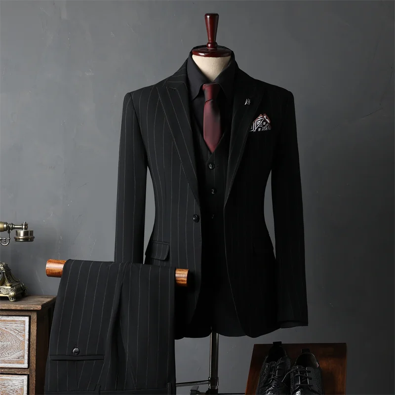 Men's Classic Luxury Vintage Plus Size Pants Suits Black V-Neck Smooth Coat Formal Business Wedding Occasions Wedding Suit
