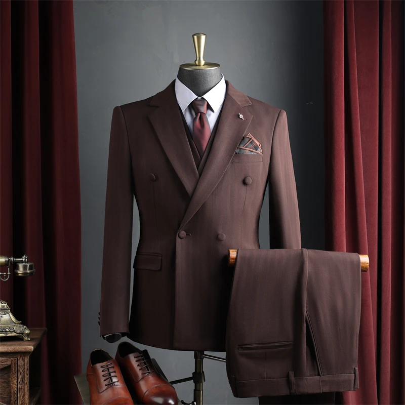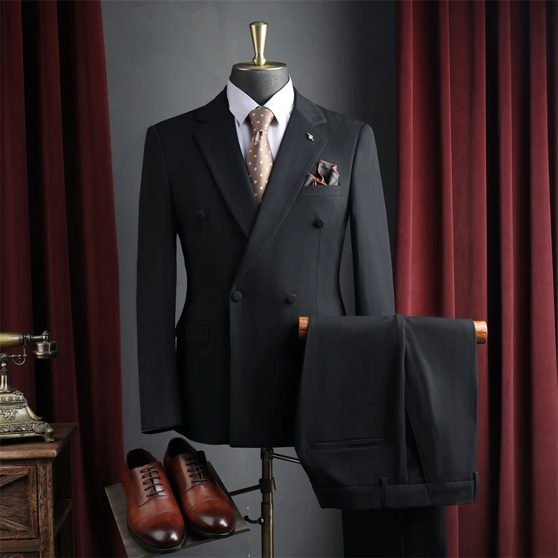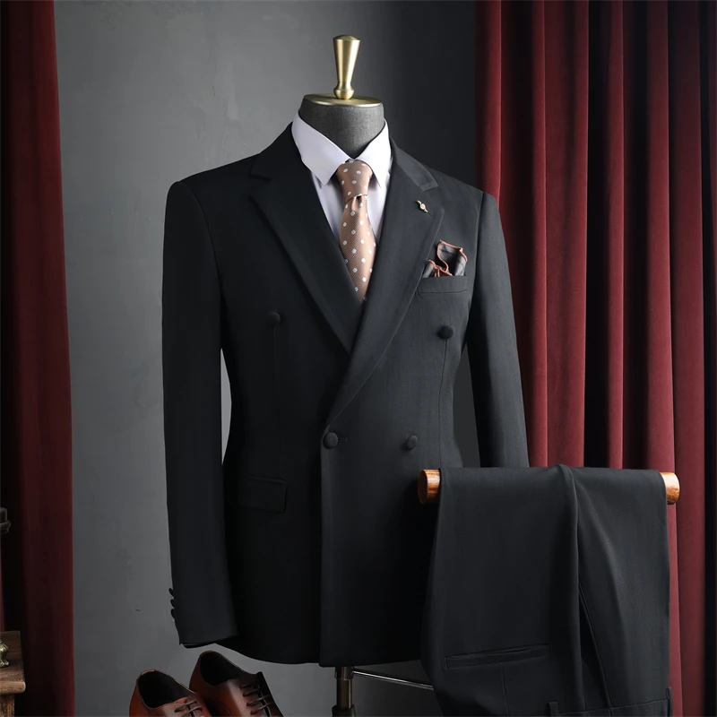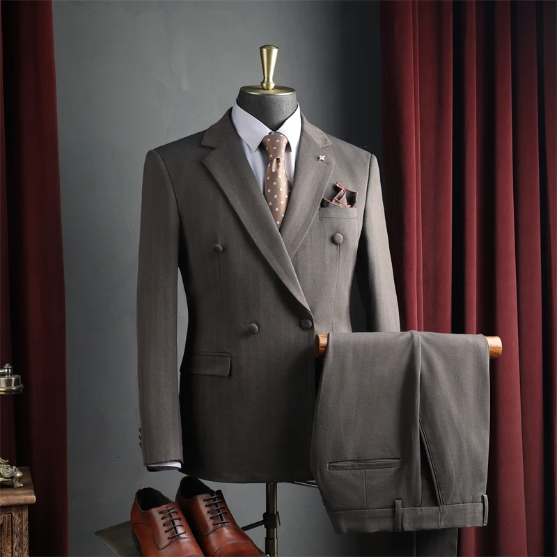 Men's Business Suits Double-Breasted Jacket Pant Set Zipper Fly Closure Worsted Fabric Formal Evening Groom Groomsmen Elegant